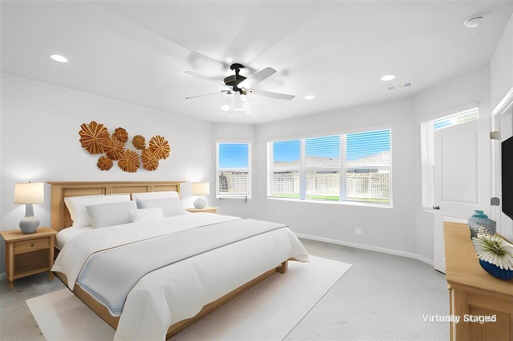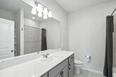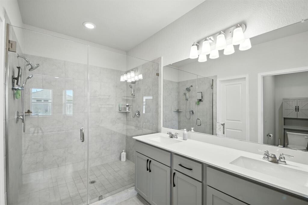 Discover Your Ideal Home in Pecan Park! Step into modern living with this spacious 2,360 sqft two-story gem in sought-after Pecan Park. The open-concept main level features a seamless flow between the kitchen and living room-center island, granite countertops, recessed lighting, and plenty of natural light make it the heart of the home. The luxurious primary suite downstairs boasts a generous layout, dual vanities, and a walk-in shower for a serene retreat. Upstairs offers flexible living with an open bonus room, two comfortable bedrooms, and a full bath-ideal for family, guests, or a home office setup. The laundry is thoughtfully plumbed for a sink, as is the back porch plumbed for an outdoor kitchen (ready for your customization), and the home conveys with fridge, washer, and dryer included. Outside, enjoy an ample backyard on a 0.244-acre lot-perfect for relaxation or entertaining. Solar-efficient living comes standard with 31 solar panels that reduce energy costs; a transferable loan presents a great opportunity for future savings. A current inspection report is available in MLS for added buyer confidence. Located within the master-planned Pecan Park community, enjoy quick access to the sparkling community pool, playgrounds, greenbelt trails, and Colorado River hike-and-bike paths-enhancing both lifestyle and leisure. You're just minutes from charming Downtown Bastrop's shops, restaurants, and riverfront. Commuters will appreciate being only a short drive from SpaceX, the Boring Company, and Tesla facilities, with the Austin airport and Circuit of the Americas also within easy reach. This beautiful, energy-smart home balances functionality with modern comfort in a vibrant community-ready for your next chapter!