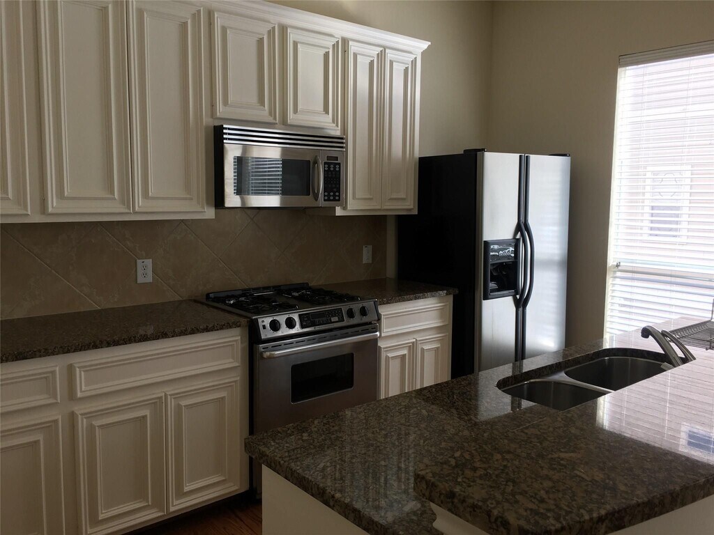 Schedule your self-showing today! Discover this stunning three-story townhome with a two-car garage,located in a private community just minutes from Memorial Park,Downtown,dining,and endless shopping and entertainment. Enter through a private,tree-lined courtyard that creates a welcoming first impression. The 1st floor features a secondary bedroom with a full bathroom for guests. The 2nd level offers a spacious living area with soaring ceilings and open kitchen equipped with stainless steel appliances and abundant storage. Step out onto the balcony to enjoy quiet evenings or morning coffee. The 3rd level is dedicated to the expansive primary suite,complete with a retreat-style bathroom featuring a soaking tub,separate shower,and a large walk-in closet. This level also includes an additional space,perfect for a sitting room,study,or nursery. Low security deposit program available /Free utility concierge at move-in/ Fast approval process. Sorry,no pets. No Section 8. MLS# 56852436