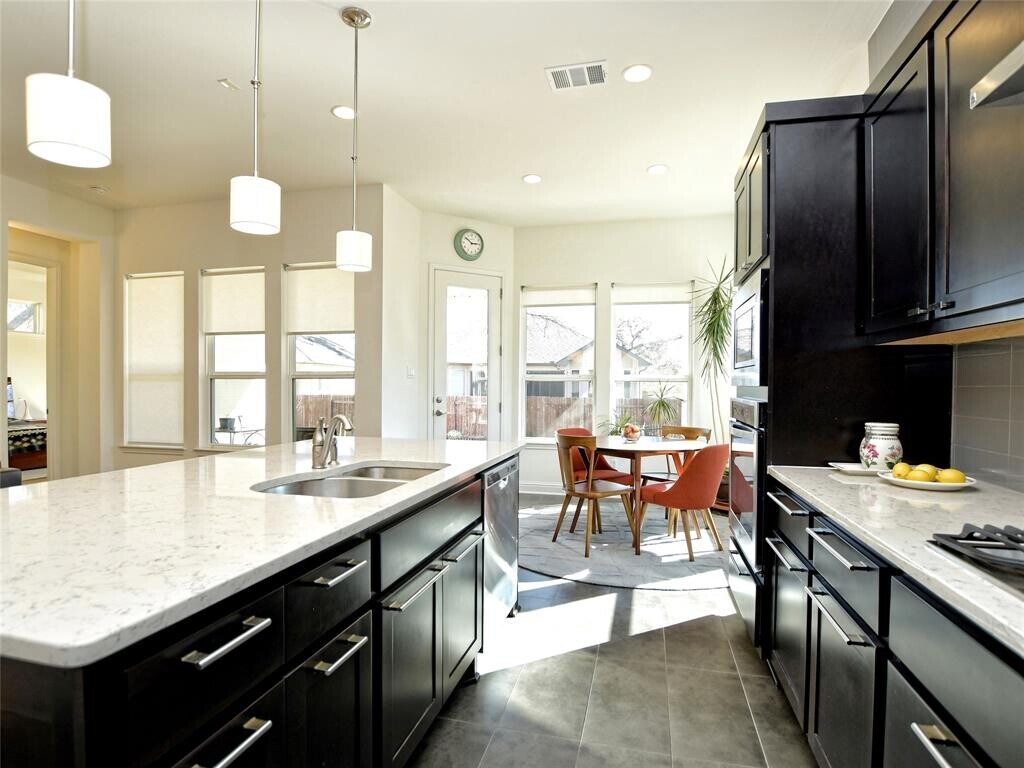 Lovely 3-bedroom home with a dedicated office/study, thoughtfully designed with a well-appointed floor plan and beautiful gleaming wood floors throughout the main living areas. The spacious modern kitchen features stainless steel appliances and overlooks the inviting living room—perfect for everyday living and entertaining. A separate dining area and private study with French doors provide flexibility for work or hosting guests, complemented by high ceilings that enhance the home’s open, airy feel. Step outside to an extended covered patio and private backyard, ideal for relaxing or enjoying outdoor gatherings. Located in the highly desirable Brushy Creek neighborhood and zoned to sought-after Round Rock ISD schools. Enjoy exceptional community amenities including walking trails, parks, and a community pool just minutes away. Conveniently close to excellent shopping, dining, and entertainment, with easy access to Toll 45, Highway 183, FM 620, and IH-35. Close to major employers.