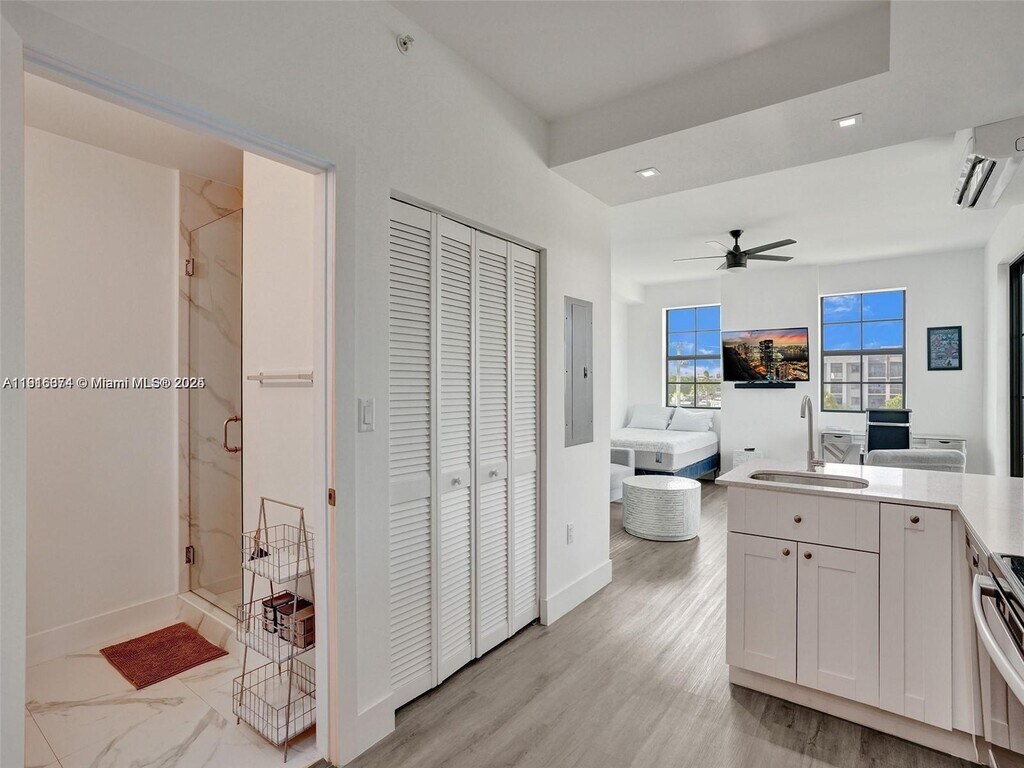 Rarely available beautiful boutique corner Loft recently developed in 2020! Only 45 residences perched above several businesses, including family dentistry. Oversized balcony allows for stunning view of nightly light show courtesy of Hardrock Guitar hotel. Additional Hurricane windows let in an abundance of light. Great location- New Downtown Davie! One mile from Nova, FAU, UF, and Broward college. Modern open kitchen and elegant bathroom with high end finishes. Quartz, SS, waterproof flooring, marble. Secured key card access to enter bldg, fitness ctr, storage, and media / pool rm. Convenience of premium assigned parking and a/c storage. Mins away from highways and close proximity to Ft Laud international airport. Low HoA includes water! Rent up to 4x a year. Plenty of guest parking.