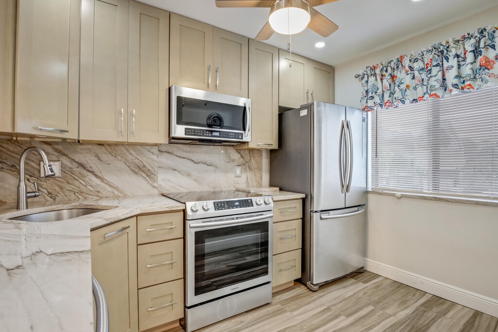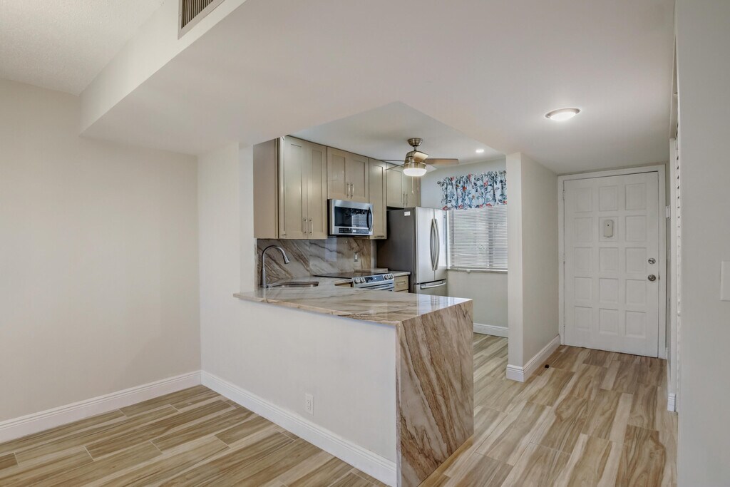 🔥 Modern Comfort in a Gated 55+ Community ✨Step into this beautifully renovated corner unit designed for comfort and style. Enjoy an open-concept layout featuring sleek stainless steel appliances, rich wood-look tile flooring throughout, and a massive closet perfectly positioned near the kitchen for convenience.Unwind on your private screened balcony, or soak up the sun at the nearby community pool. Nestled in a gated 55+ community with 24/7 security, this home offers the perfect blend of tranquility and peace of mind.This unit is stylish, move-in ready, and fully updated inside. Whether you're relaxing at home or enjoying the community, you'll feel right at home here.Don't miss out on this incredible value - schedule your showing today!