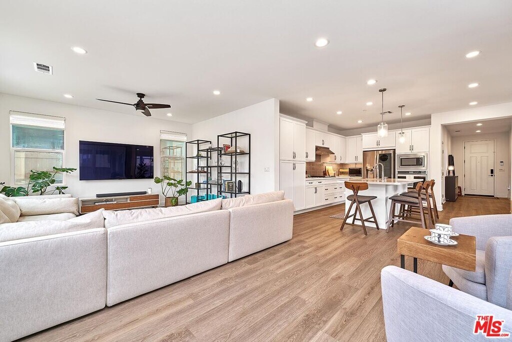 This extensively upgraded DETACHED end-unit is located on one of the most private and desirable lots in the highly sought-after Bedford community, offering exceptional privacy, comfort, and resort-style living. Situated on one of the largest lots in the community, the home enjoys expansive outdoor space surrounded by mature trees, rolling hillside, and beautiful natural views, creating a rare sense of openness and tranquility. Meticulously maintained and thoughtfully upgraded throughout, this home reflects true pride of ownership and presents a rare turnkey leasing opportunity. Offering approximately 3,114 sq ft of bright and open living space, the home features 4 bedrooms and 3 bathrooms, including a convenient main-floor bedroom and full bath with a large walk-in shower. The spacious upstairs loft provides flexible use as a family room, media room, or additional living space. Enjoy exceptional energy efficiency with a Tesla solar system featuring 24 panels, Powerwall, Backup Gateway, and EV charger. The system provides extremely low to near-zero electricity costs and effortless EV charging convenience. Interior features include custom countertops, upgraded cabinetry, crown molding, solid-core doors, premium flooring, custom blinds, cased windows, and designer lighting. The gourmet kitchen is equipped with Whirlpool and Samsung appliances and a beautifully wrapped island, ideal for both daily living and entertaining. The spa-inspired primary bathroom offers dual sinks, a full-height tile shower, and elegant finishes. Additional highlights include epoxy garage flooring with built-in storage and professionally designed landscaping and hardscape. Residents enjoy resort-style amenities including multiple pools and spas, a saltwater lap pool, fitness center, parks, walking trails, dog parks, and clubhouse. Located within walking distance to Bedford Marketplace with Starbucks, dining, and everyday essentials, and offering easy access to the 15 Freeway, this home delivers the perfect balance of luxury, convenience, and lifestyle. A rare opportunity to lease a beautifully upgraded, energy-efficient home in one of the most desirable communities in the area. MLS# 26733071