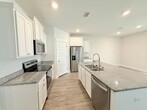 View In 3D: This stunning home is ideally located in the heart of Pace within the highly sought-after Arbor Place community. Step inside to a beautifully designed open-concept floor plan featuring a spacious living area that flows seamlessly into the dining space and modern kitchen. Luxury vinyl plank flooring runs throughout the main living areas, while plush carpet adds comfort to the bedrooms. The living room boasts a beautiful double tray ceiling, while the kitchen is a standout, featuring granite countertops, a large center island with a dual-basin undermount sink, a spacious pantry with beautiful wood shelving, and stainless steel appliances including a French door refrigerator, flat-top range/oven, built-in microwave, and dishwasher. The primary suite is thoughtfully separated from the additional bedrooms for added privacy and includes a tray ceiling with fan and a luxurious ensuite bathroom with double vanities, a garden tub, separate shower, private water closet, and a spacious walk-in closet. Three additional bedrooms share a second full bathroom with a single vanity and tub/shower combo. Additional highlights include a spacious laundry room with storage shelves and space for a full size washer and dryer, a covered back porch with extended open patio, a fully fenced backyard, and access to the community pool. Amenities: Community Pool