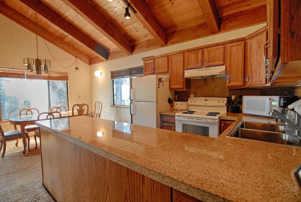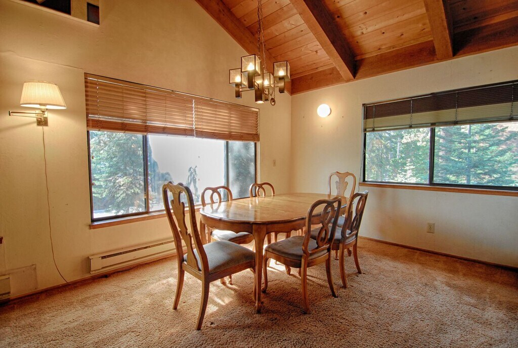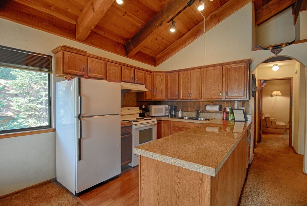 "Cedar Flat Lookout" RENTAL TERMS AND CONDITIONS: • Term & Rent: Available for a 3-4 month winter lease starting FROM $2,450/month plus utilities and expenses ? Contact agent for present availability and additional terms. PROPERTY OVERVIEW: Open living room with 26' vaulted ceilings and a beautiful, large stone wood burning fireplace. The home has a flat screen TV (not pictured) as well as high-speed internet. Updated kitchen cabinetry and appliances. The kitchen is open to both the living area and the dining space. 3 of 4 bedrooms are located downstairs along with a remodeled full bath and two car garage. The two bedrooms downstairs can sleep up to 8 guests, while the third bedroom has a daybed and also houses the laundry and has a door to the back yard. The primary bedroom upstairs has a plush queen bed and a private en-suite bathroom plus walk in closet. SLEEPING ARRANGEMENTS (Sleeps 10 in 7 Beds): • BEDROOM #1 (upstairs): 1 queen • BEDROOM #2: 1 full/double, 1 twin • BEDROOM #3: 1 full/double, 1 bunk bed with 2 twins • BEDROOM #4 (Laundry Room): Day bed (1 twin) INTERIOR FEATURES: • Spacious living room with wood burning fireplace. • Fully equipped kitchen with newer appliances including oven with newer range/oven, fridge with top freezer, dishwasher • Dining area with seating for 6 • Wood burning fireplace (tenant supplies their own wood) LOCATION & EXTERIOR FEATURES: • Midway between several popular ski resorts • Easy access to Hwy 28 • 2-car garage plus additional tandem parking for 3-4 more vehicles in the flat driveway PROPERTY MANAGEMENT: • Tahoe NORTH Rentals – dba for Christopher Kelly Smith, Trustee & CA Real Estate Broker DRE License: #01100871 DISCLAIMERS: • The housing provider makes no warranties, express or implied, regarding the accuracy of the information provided in this listing, including but not limited to amenities or the condition of the property. Prospective tenants are strongly encouraged to independently verify all details and inspect the property in person prior to submitting an application. • Rental rates and terms are subject to change without notice. To secure the advertised rate, prospective tenants must submit a completed application along with the required holding fee.