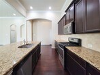 Stunning one-story Beazer home perfectly situated on a corner lot,offering style,comfort,and energy efficiency. This home features an open-concept family,kitchen,and breakfast area—an entertainer’s dream! The kitchen and primary bath boast granite countertops,while elegant tile and wood flooring run throughout the home. The primary suite includes custom curved ceilings,crown molding,an ensuite bath,and a spacious walk-in closet. Additional highlights include a game room or study,and well-sized secondary bedrooms. Enjoy relaxing or entertaining outdoors with the extended covered patio and attractive stone-and-brick exterior. This home combines modern design,energy efficiency,and comfortable living—all in one beautiful package! MLS# 59747067