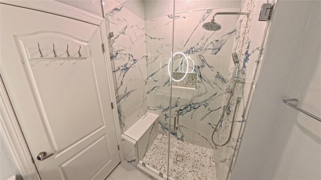 GREAT COASTAL LOCATION & CLOSE TO THE TOP-RATED U.S. BEACH ON SIESTA KEY! This spacious 2-bedroom,2 bath condominium home is an end unit on the 2nd floor (top floor in the building) with a wooded view and vaulted ceilings offering spaciousness and privacy. It is conveniently located close to the clubhouse,pool,fitness center and mailboxes. It boasts beautiful wood laminate flooring,custom paint,shiplap in the living room,upgraded light fixtures and ceiling fans,new plumbing fixtures and door hardware throughout. It features an open floor plan with a living area that has a screened lanai with a beautiful nature view,a raised breakfast bar that is shared with the kitchen and a dining area to the side of the kitchen. The kitchen features solid surface countertops,glass tile backsplash,custom cabinetry,stainless appliances and contains a side-entry laundry closet with a full-size washer and dryer. The private,master bedroom has 2 large windows,a walk-in closet and "en suite" bathroom. The shower is tiled and glass enclosed with a beautiful vanity and lighted mirror. The second bedroom has 2 large windows and is located across the hall from the main bathroom which includes a large tub with shower. The unit comes with an assigned,lighted carport. The building’s exterior has been renovated with impact resistant thermal windows. The floor plan is in the photo gallery. The condo is in the quiet,gated community named “Bella Villino Condominiums” which is located in the award-winning,master-planned development of “Palmer Ranch” in south Sarasota. The community boasts superb amenities not available at comparable properties in this price range and features an elegant clubhouse with a resort-style heated pool and spa,a large fitness center with state-of-the-art equipment including cardio machines,indoor racquetball and basketball,a billiards room,and a business center. The community has a tennis court,pickle-ball courts,a car detail area,gas grills with picnic areas,pet stations located around the property,an onsite property manager,and maintenance staff. It is close to world-class beaches,marinas,the popular Legacy Trail (bicycle,jog,or walk),shopping centers with a Costco,Target,Publix,Walgreens,CVS,various banks,restaurants,golf courses,art centers,museums,and so much more. Unfurnished 12 month lease. MLS# A4688293