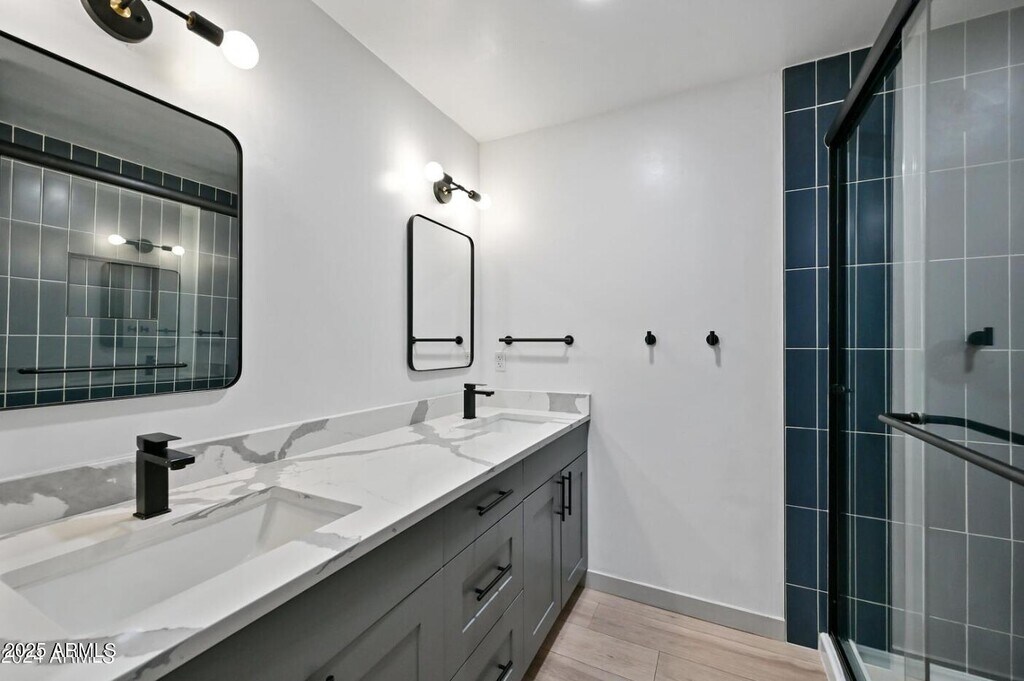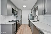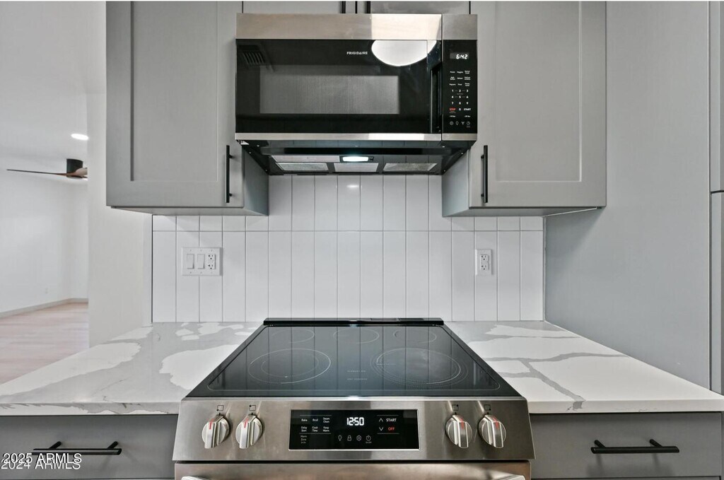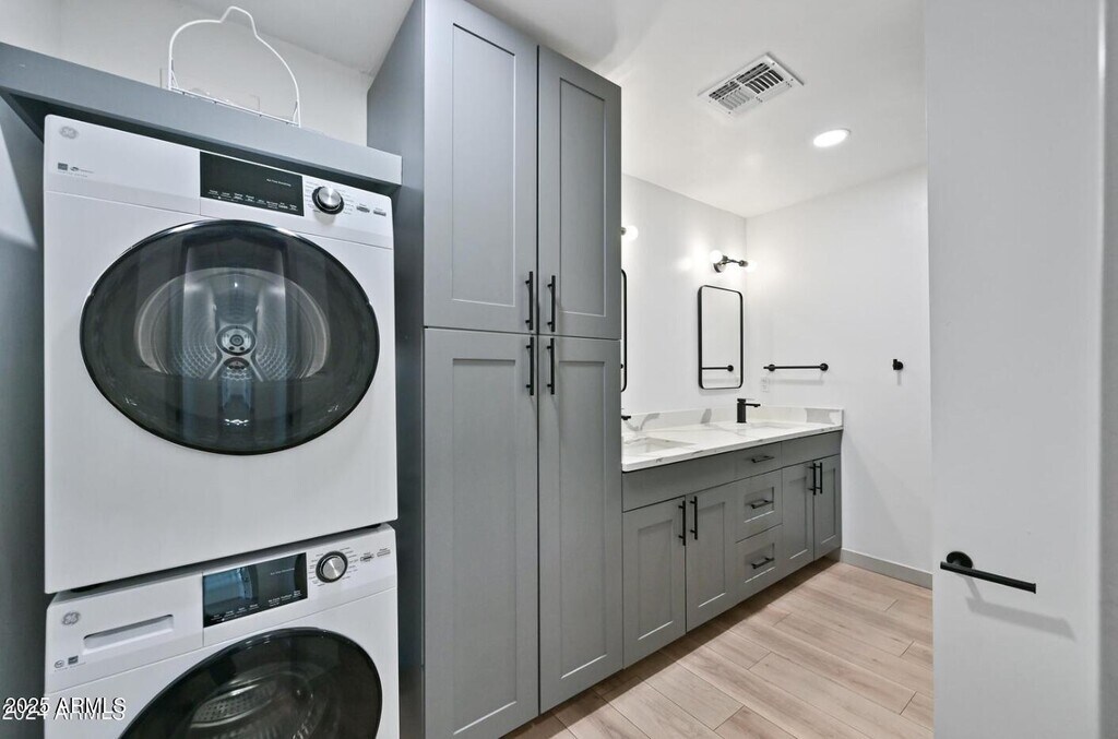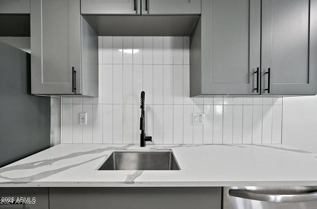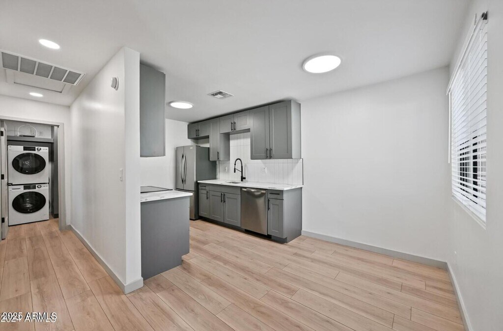 This absolutely stunning two bedroom is available for rent. Very nice floor plan. Newer cabinetry,quartz countertops,vinyl plank flooring and newer appliances give this unit a contemporary flair! The remodeled bathroom has a large vanity with double sinks and beautiful shower with tile surround and glass doors. It is also packed with storage solutions and a full size washer/dryer. French doors open up to the front courtyard and living room opens up to a private backyard with artificial turf. Perfect for entertaining or family get togethers. $150/month flat electricity fee and $65/month flat water fee. Small pets welcome with approval. Take a tour today!