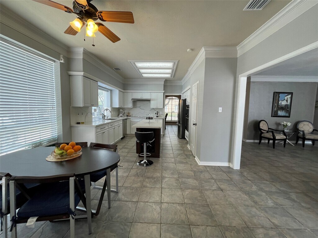 Beautiful corner lot home in a gated community on the golf course of South Shore Harbor. Zoned to the highly desired Clear Creek ISD. Close to shopping & dining,NASA Space Center,and Kemah Boardwalk. The updated home features 4/5 bd,3.5 ba,recently changed cabinets & vanities,quartz and granite countertops,soft closing cabinets & drawers. Reverse osmosis water filter. Neutral,modern look colors. Kitchen with breakfast area,living room,dining room,and extra space to use as an office or library. Primary spacious suite conveniently located at the 1st fl. Bathroom with quartz shower and tab with jacuzzi,and quartz double sink countertops.Huge area on the 2nd floor that you can use as a library and office,media,pool/ping-pong,or anything you want. Let your imagination flow. Pool table,Fridge included. The backyard with palm trees is an oasis of relaxation. Surround system,covered patio with outdoor kitchen,heated pool & hot tub. Everything you need to enjoy life. MLS# 6400742