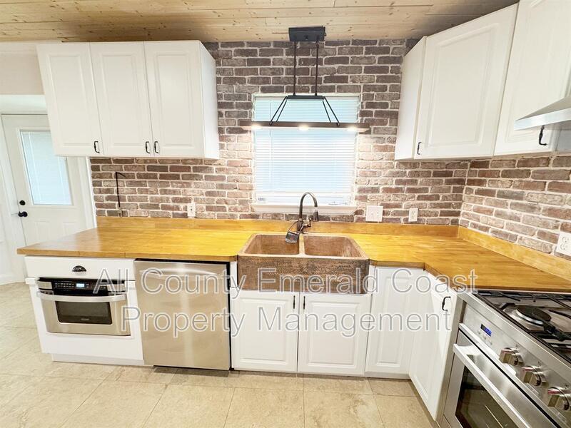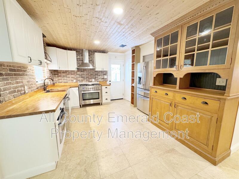 ***Move-In Special 50% Rebate of month's rent with a signed lease to begin now to January 5th*** Recently Updated!!! New exterior paint! Gorgeous Florida cottage style home nestled in the sought out neighboorhood of Indian Creek in Destin FL. This homes curb appeal is the first thing you will notice once you see it. Updates include brand new carpet in the primary bedroom. Primary bathroom is completely remodeled with top of the line double vanity, light fixtures, free standing soaking tub, gorgeous tile rain shower. Kitchen features gas stove, butcher block countertops, and stainless steel appliances. Back of the house is where two additional bedrooms await. Relax from the comfort of your covered deck and enjoy the lucious fenced yard during those cooler evenings. On top of all the upgrades, this home also offers a large shed for extra storage, fenced in parking for your boat or work trailer with gate. NO HOA! Lawn and pest control included! Pets subject to approval with additional fees. We offer resident benefit package, ask for details!