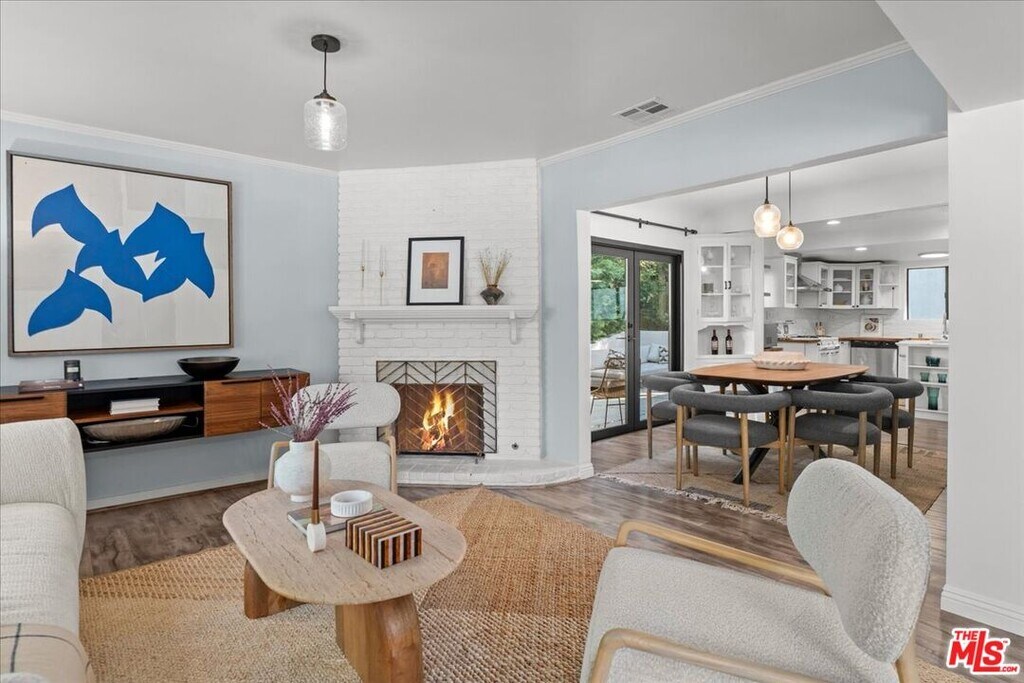 Exclusively presenting for purchase is this remarkable picturesque house in one of Sherman Oaks most desirable neighborhoods south of the Boulevard. This home is proudly perched up on a quiet and family friendly corner lot, boasting 2 bedrooms and 2 bathrooms and a multifunctional bonus room, consisting of approximately 1,453 square feet, situated on approximately 5,000 square feet of lush land, as well as a 2-car garage with additional driveway parking spaces. As you walk into this meticulously maintained home, you are met with a naturally illuminated and open space, perfect for entertaining, with elevated neighborhood views and a welcoming gas-lit fireplace in the background. Some of the many interior features include central HVAC, ash wood laminate flooring throughout, and tile flooring in the bathrooms and a spacious kitchen with plenty of counter space. Appliances include a washer, dryer, dishwasher, & wine refrigerator. Just off the kitchen is the spacious patio, pendulous warm-toned string lights with enchanting treetop views that lead you to a cedar-built hot tub surrounded by passionfruit vines enjoyed by the sellers and their family for years. This is the dream home you imagined as a child, so don't let this opportunity pass you by. MLS# 25619069