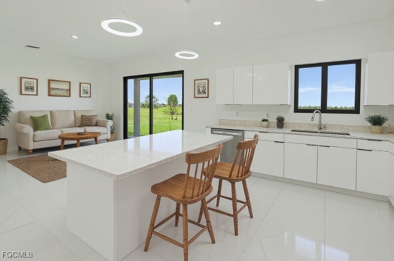 This stunning,move-in-ready home offers luxury and style in a sought-after location. Key Features: - Elegant design with neutral tones - Charming paver driveway - Luxurious master en-suite with white cabinetry and quartz countertops - Tile floors throughout for warmth and sophistication - Immaculate landscaping for outdoor enjoyment - Built with the finest materials by a renowned builder - Cathedral ceilings for spaciousness - 4 bedrooms and 3 baths - Open floor plan with split bedroom design for privacy - 10-foot ceilings,24x24 tile,impact windows,irrigation system,automatic garage door,glass doors in master bath,and washer/dryer. Don’t miss this rare opportunity! Schedule your private tour today! REQUIREMENTS: No evictions Clean Background Monthly net income of 3x times the rent. First,Last and 1 Sec Dep required! Rent to own option available. The unit will be delivered with blinds and shelves.