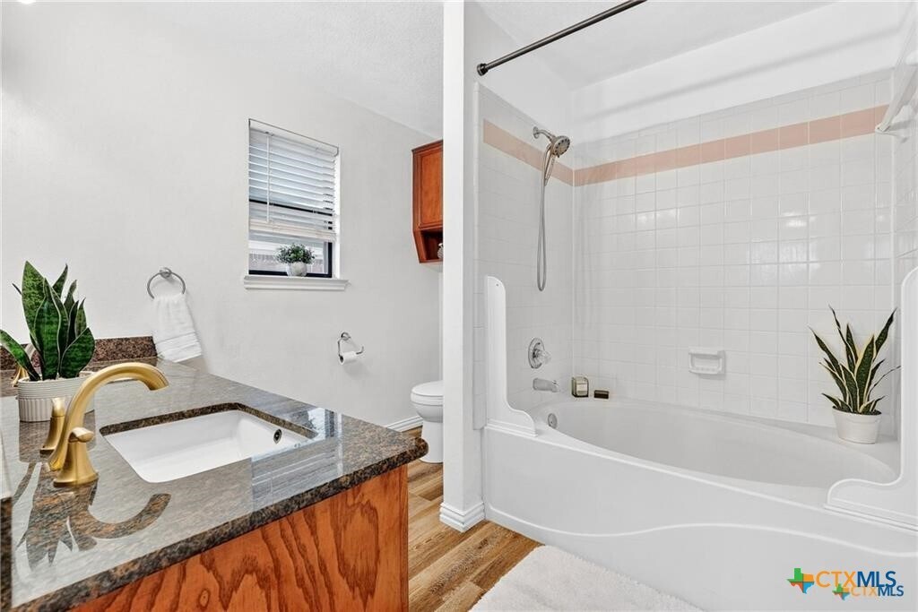 Welcome to this gorgeous 4-bedroom,2-bath home located in one of the most desirable neighborhoods in Killeen! Featuring laminate flooring throughout,beautifully updated bathrooms,and a spacious backyard with a built-in basketball hoop,this home offers both comfort and fun. It’s move-in ready and waiting for you—just submit your application and make it yours!