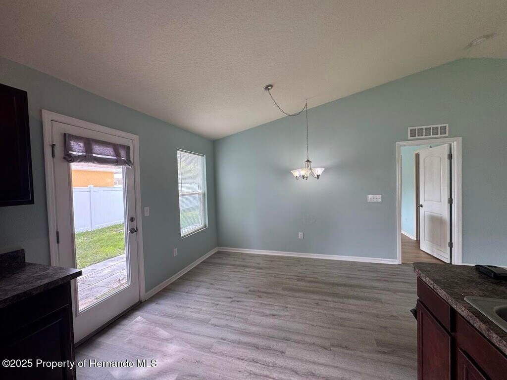 Come see this adorable 3-bedroom 2 bath 1 car garage home today! Enter through the front door, the garage will be to your right. If you take a left you will find the hallway with the laundry closet, spacious bedrooms and a full 2nd bath. The bedrooms are a great size. The 2nd bedroom has a walk-in closet. The 2nd bath is a tub/shower combo. Continue on past the hall and the home opens to a large great room with cathedral ceilings. There is a separate dining area. and a breakfast nook. The kitchen is open with lots of counter and cabinet space. There is also a pantry for extra storage. The back door takes you to a paved patio area to enjoy the beautiful Florida evenings! Lawn care is included. This is a great space, and it will not last at this price! Conveniently located in the heart of Spring Hill.