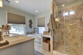 Beautiful remodeled home in the heart of Rosedale - a magnificent central Austin neighborhood. Open living area with polished hardwood floors and a fireplace. Great functional kitchen w/corner sink, granite countertops, stainless appliances (not shown in photos) and tile flooring. Large master with updated bath, double vanity, walk in travertine shower and a separate soaking tub. Great outdoor spaces, arbored deck with large trees. 1 space allotted in detached 2-car garage. Garage apartment is leased out separately. Zoned for Bryker Woods Elementary - walk to Central Market, restaurants, Ramsey Park and Pool - great, great neighborhood. Don't miss out!