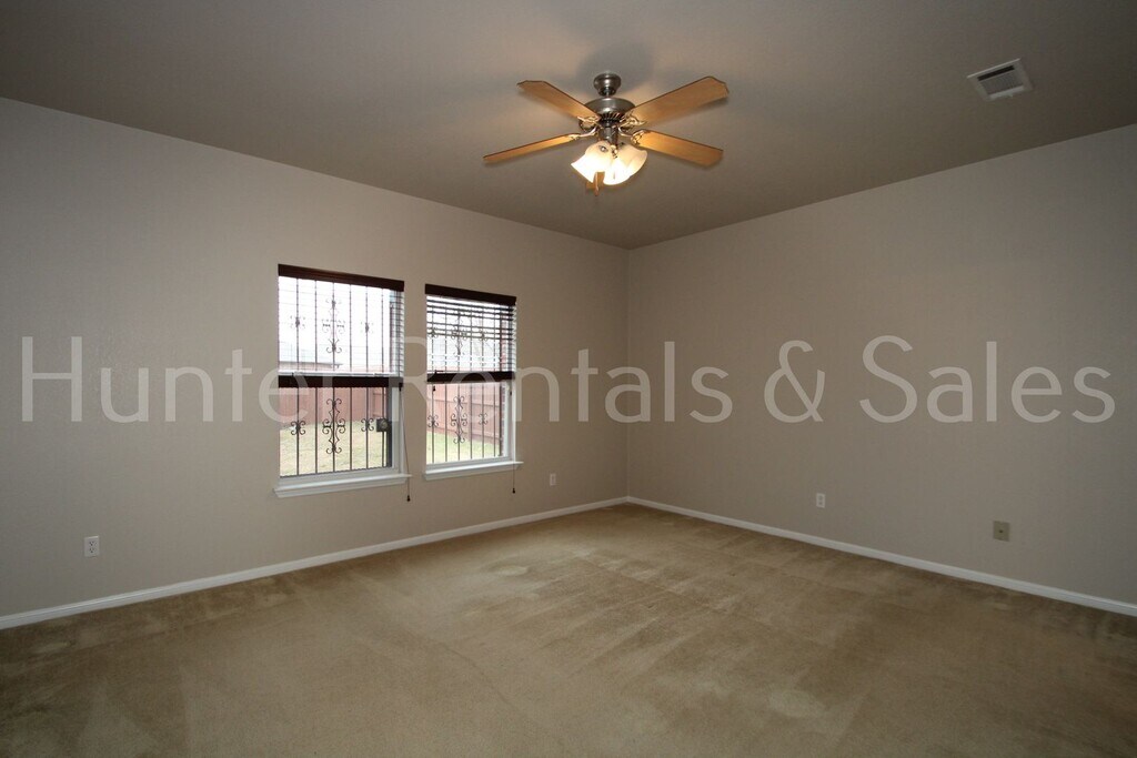 Spacious two-story dream home in Bridgewood Addition. Privacy fence yard, covered patio, 2-car garage, Primary bedroom downstairs, formal dining area, main living area includes ornately wood cased fireplace, handsome ceramic tile in all wet areas, security system equipped, large kitchen with granite counter tops, built-in microwave, glass top range, side-by-side refrigerator all appliances are stainless), pantry, primary bathroom with double sink vanities, jetted tub, and separate shower. Additional amenities of this home include raised panel doors, wooden blinds, upstairs nook can be reading room, and so much more. PRICE AND AVAILABILITY ARE SUBJECT TO CHANGE WITHOUT NOTICE Application Information: * Offered by Hunter Rentals & Sales Visit our website, for an online application and to view complete listing information. Questions, call . * We do full background checks & are seeking qualified, long-term residents. To view our rental criteria, visit our website: * Application Fee: $65.00 each. * Security Deposit and rent is due at lease signing. * Once approved, a one-time non-refundable administration fee of $125 will apply. The administration fee is due by the lease start date.