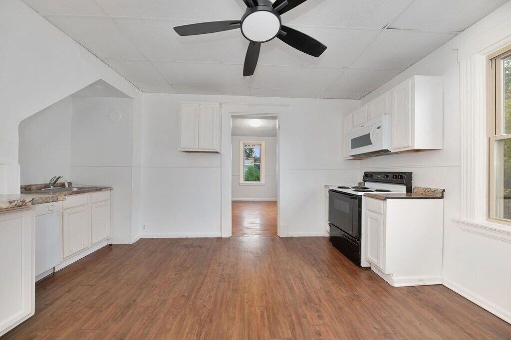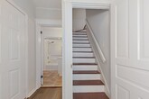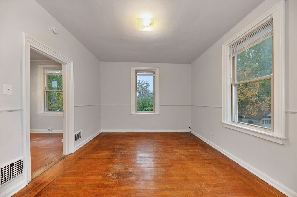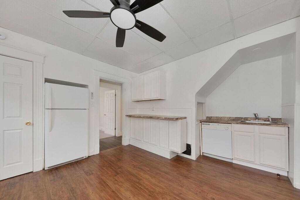 welcome home to this adorable and roomie three bedroom apartment in the upstairs second and third floors of a two family. This place has a fully equipped kitchen, including stove, dishwasher, microwave and fridge. It has a washer dryer hook up in the basement. You have one designated off street parking spot. In a large front porch for sitting outside. Landlord pays water, Lawncare and trash.