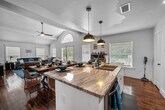 Discover your perfect getaway in charming Lakeside, TX with this beautifully remodeled 3-bedroom, 2-bathroom home offering a serene escape. The spacious primary bedroom boasts a king-size bed and en-suite bathroom, while the second bedroom features a queen bed, and the third has a queen bunk bed. Feel at home with smart TVs in every room, a vast backyard with outdoor seating, and an outdoor playroom for kids. Step inside to a warm and welcoming atmosphere. The living area is designed for relaxation, featuring comfortable seating and smart TVs with access to streaming channels in every room. Enjoy a fully stocked kitchen with a wall-mounted pot filler for convenience while cooking family meals, and a coffee and cocktail bar to start and end your day perfectly. Optional kayak rental is available directly from us, located a block away on the dock of a lakeside property. Two kayaks are available for daily rentals with a 24-hour notice required to guarantee availability. Only dogs are allowed with a maximum of two per reservation, and a leash is required as there is no fenced-in area. Located just a block from the lake park with full public lake access, this home offers views of the marina and is close to the nature center, Sansom Park, and a short drive to downtown Fort Worth, the zoo, and more. Enjoy the best of Lakeside and Fort Worth with ease. Potential noise during the day may occur due to nearby military base fighter jet training above the lake, which can be noticeably loud. Check-in is after 4:00 PM and checkout is at 11:00 AM, with self-check-in available via SmartLock. No parties or events are allowed unless explicitly granted privilege in writing. Unauthorized events will incur a $500 fee and may result in immediate eviction without refund. The hot tub cover must be kept on when not in use to maintain water balance. There is one locked closet in the hallway for cleaning supplies, which is off-limits to guests. This home does not include a dedicated home office set-up, but offers Wi-Fi access throughout the property for your convenience. [SI]