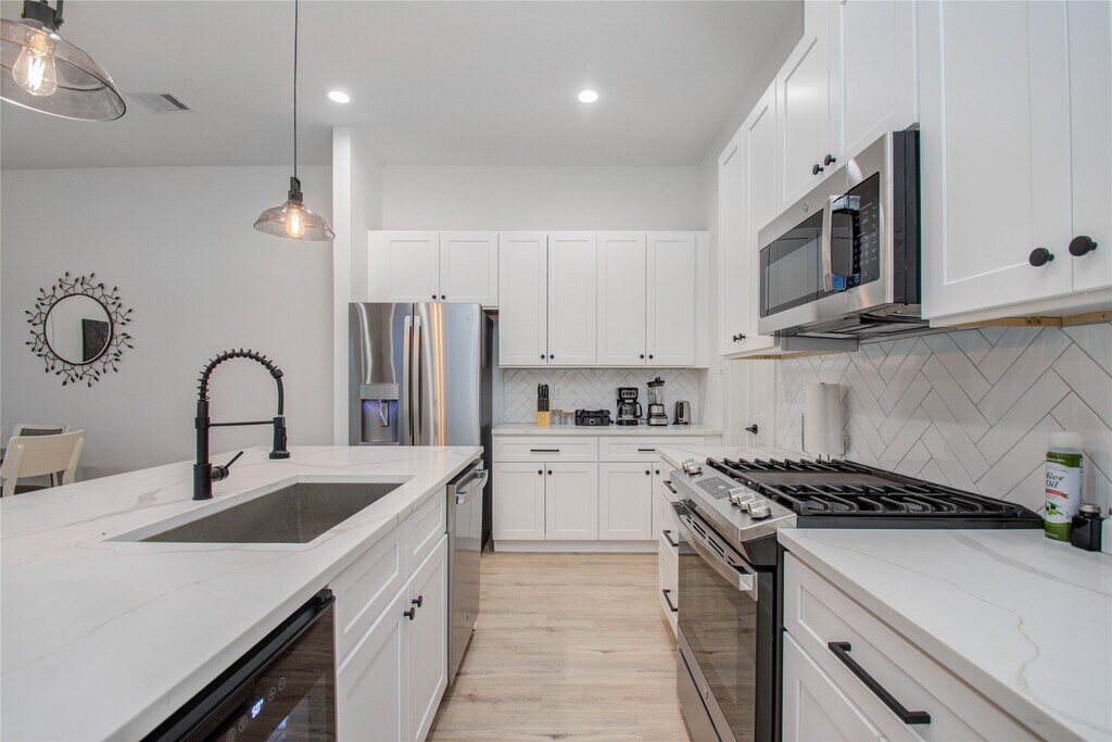 This is a cozy furnished 3 bedrooms,2 bathrooms and a half bath home. It is modern with an open floor plan,upgraded stainless steel appliances,shaker cabinets,modern glass mosaic-style backsplash,spacious 2nd floor living area,open concept first floor,with one multi-purpose room downstairs that gives you so many options. Enjoy the convenient location that offers quick access to many downtown attractions to the new East River . It has a covered patio and ample space in the backyard for entertainment. Home is leased out furnished. The property is within walking distance to East River,Houston's largest mixed use destination with a 9 hole golf course and luxury shopping. You are minutes away from all major freeways I-10 East,59/69. MLS# 69539252