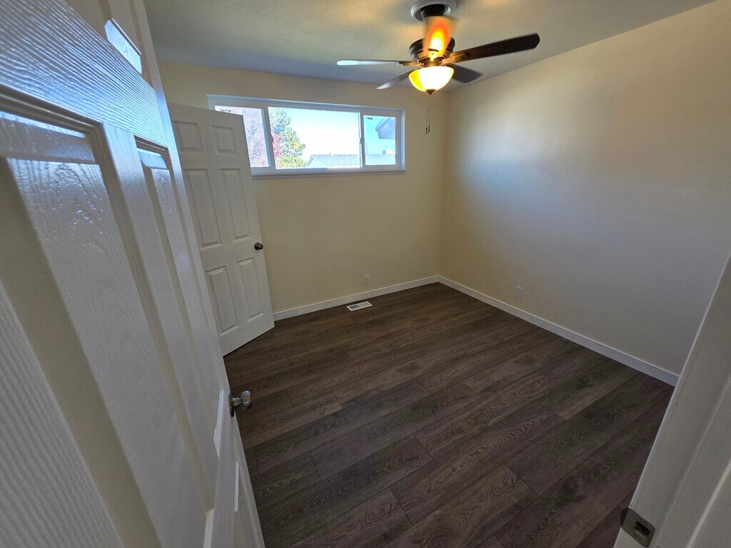 This beautifully updated 3-bedroom, 1-bath main-floor home is located in a quiet, established Kearns neighborhood with quick access to Bangerter Highway and just minutes from Jordan Landing’s shopping, dining, and entertainment. You’ll also find David Gourley and Southridge Parks at each end of the street, and VASA Fitness, grocery stores, and restaurants nearby.Home Features3 spacious bedrooms1 fully remodeled bathroomLarge, newly renovated kitchen with quartz countertopsStainless steel Fridge, Microwave, Oven and DishwasherBright, open family room with updated lightingBeautiful hardwood (laminate) flooring throughoutEnergy-efficient double-pane vinyl windows for added comfortEach unit has its own independent Central air conditioning and efficient heatingWasher and dryer included (in-unit)High-speed Google Fiber internet included in rentTwo dedicated off-street parking spacesDoorbell camera compatibilityOne room has secret, concealed closet behind bookshelfThis listing is for the main-floor unit only. The basement unit is currently under renovation.Outdoor SpaceSpacious front and back yards with automatic sprinklers for easy maintenanceBackyard currently designated for main-floor tenant use; limited shared access may be arranged in the future if mutually agreed upon by both tenants and the property ownerOne storage shed included at no additional cost for tenants who take responsibility for basic yard care and snow removal House RulesHouse rules are designed to maintain a comfortable environment for all residents and may be updated by the property owner as needs arise, with reasonable notice to tenants.This home has two separate units — the main floor (available for rent) and a basement unit with its own private entrance.Tenants are expected to be respectful of noise levels and maintain peaceful enjoyment for both households.Quiet hours are observed from 10:00 p.m. to 7:00 a.m.No loud gatherings or disruptive activity that may impact the downstairs neighbor.The front yard is shared.Smoking and vaping are not permitted on the property.PetsDogs considered on a case-by-case basis, limited to one small or medium-sized dog (under 50 lbs).A refundable pet deposit and monthly pet rent will apply along with a pet lease initiation fee.The owner is willing to work with the right applicant to address fencing or yard modifications, with initial costs to be discussed and agreed upon in advance.Next StepsText