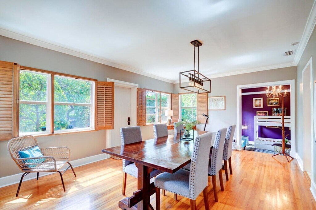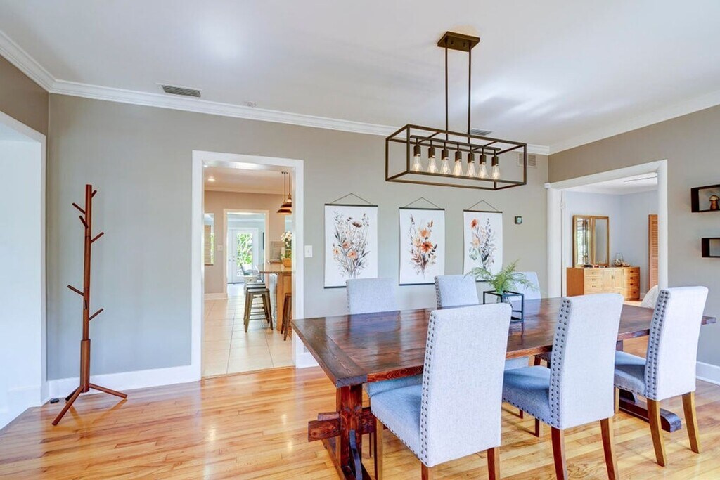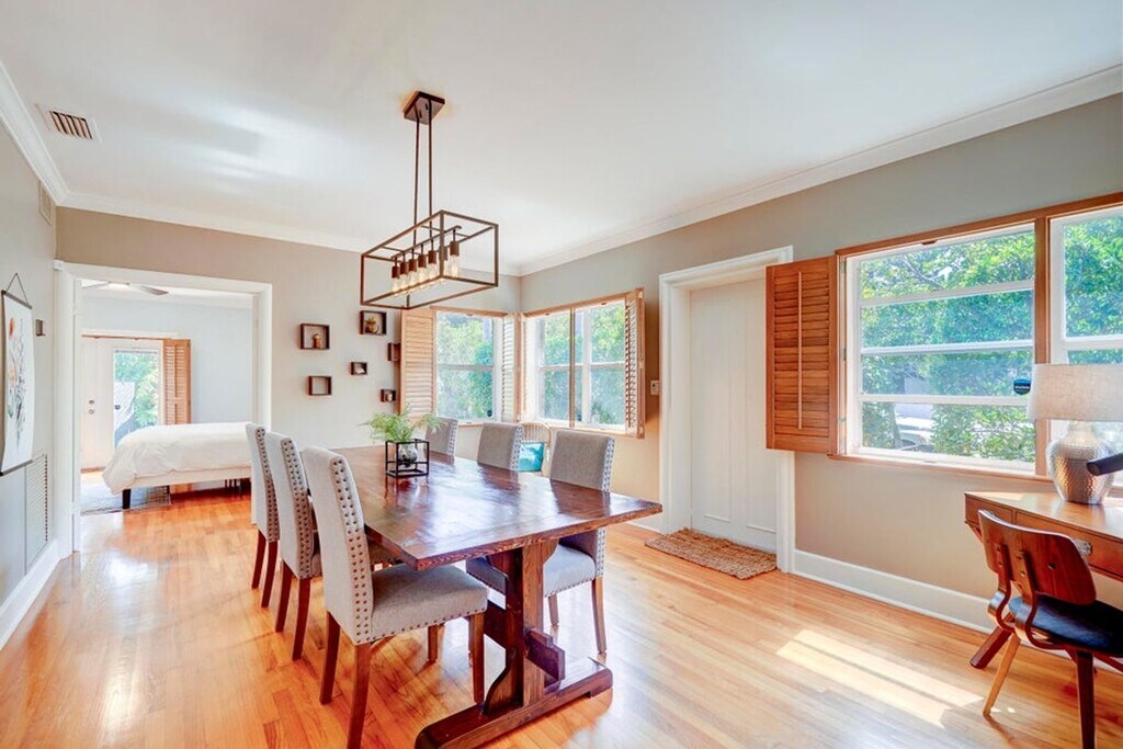 Courtesy of Coldwell Banker Realty Posted by Andrew Coleman with EXP Realty . Furnished! Move-in ready in this tropical oasis in Northwood. Charming house that is much larger than appears with beautiful garden backyard and pool. Less than 5 minutes from Downtown West Palm. Key Features: Bedrooms and Bathrooms: This spacious home boasts three generously sized bedrooms, each featuring an en-suite bathroom for ultimate privacy and convenience. Additionally, there's a versatile den that can easily serve as a fourth bedroom or home office, complemented by a half bath accessible from the pool area. Interior: Step inside to discover a thoughtfully designed floor plan with a four-way split layout, ensuring ample space and privacy for all occupants.