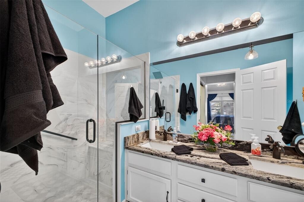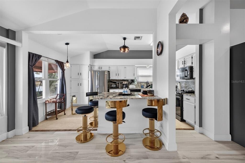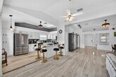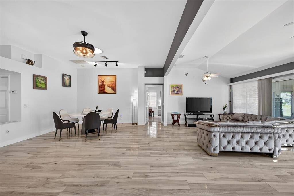 Beautiful waterfront San Marino turned into an open concept home. The kitchen,living room and primary bedroom all have lake views. Nicely landscaped with Bismarck palm tree in front and 2 majestic oak trees in back. The front entrance opens to a large 27 x 22 living room and dining area. The 2nd and 3rd bedrooms are on the opposite side of the house for optimum privacy. The kitchen countertops and backsplash are covered with premium Copacabana granite. All bathrooms have the Copacabana granite counters. The entire house flooring is Tasmania premium porcelain accept the Kitchen which is ceramic tile. the roof was replaced in 2025 and all the drip edges were replaced. The Carrier AC and Smith water heater systems were installed in 2025. The primary bahroom shower was upgraded with Corian walls. Located 1 mile from Spanish Springs Square. MLS# G5107378