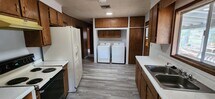 Welcome to this chalet style home, a charming 2-bedroom, 2-bathroom residence nestled in the heart of town. This single-level home features a cozy fireplace, perfect for those chilly evenings, and a fully equipped kitchen with a refrigerator, electric oven range, and garbage disposal for your convenience. Step outside to enjoy the front and back deck/porch, ideal for outdoor relaxation or entertaining. Need extra storage? The property also comes with two storage sheds. It is heated with baseboard heaters or the wood stove for the full chalet experience! Evaporative cooler for the summer time!