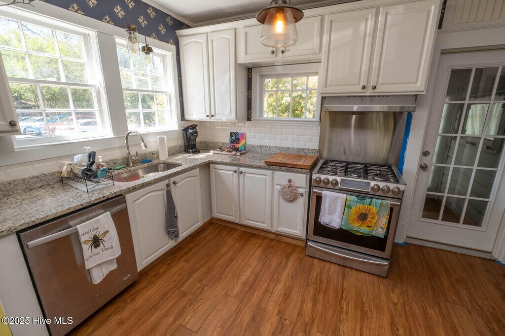 Charming Downtown New Bern Home - 411 George St Unit 1This gorgeous 3-bedroom, 2-bathroom home in the heart of downtown New Bern blends classic charm with modern comfort. You'll love being near local restaurants, shops, and the waterfront -- everything New Bern has to offer is right nearby.Inside, enjoy beautiful hardwood floors, a spacious main-floor bedroom, a full bathroom, and a laundry area with washer and dryer included. The kitchen features plenty of cabinet space and all major appliances, making it easy to settle in and feel right at home.Upstairs, you'll find two additional bedrooms and another full bathroom, offering flexibility for guests, family, or a home office.With utilities included, this home makes downtown living simple and stress-free. Whether you're sipping coffee on the porch or heading out for dinner on Middle Street, everything you love about New Bern is right at your doorstep.