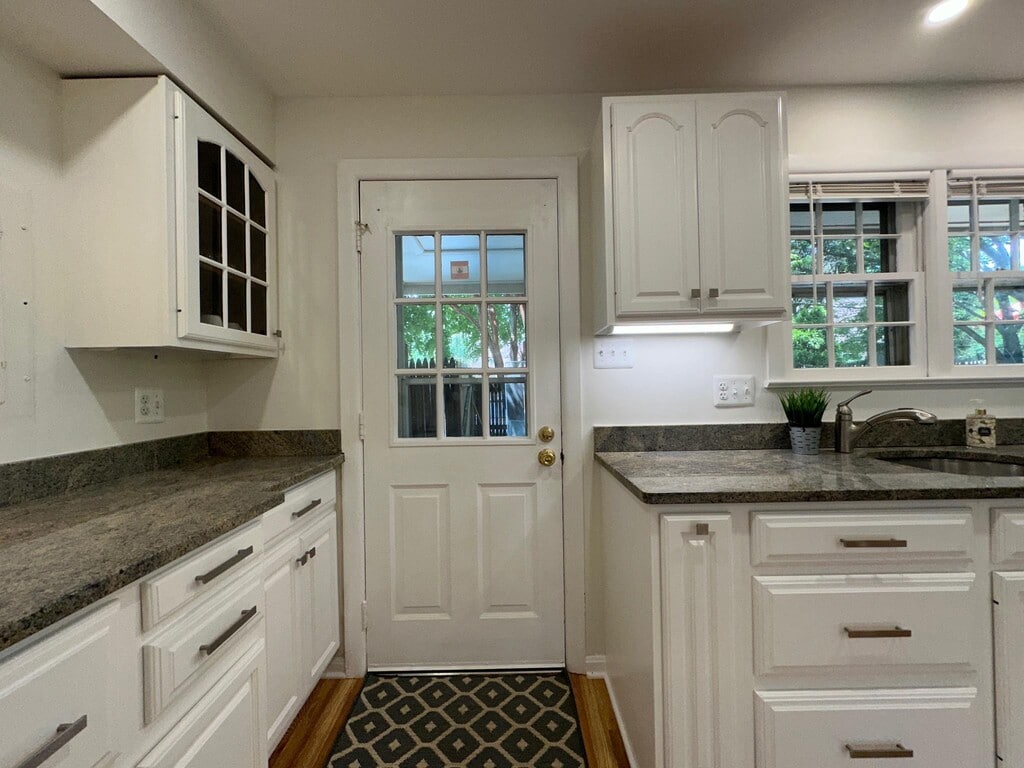 This unit is a true gem!! Welcome to this charming END UNIT townhouse, light and bright with windows on three sides and a lovely extra-large fenced outdoor space landscaped with mature plantings. Extensive interior remodeling in 2024 with the following updates: All new windows; TWO FULL bathrooms completely renovated with stylish vanities, lighting and tilework; LVP floors throughout main level (hardwoods on upper level); stair carpet; open kitchen plan with built-in microwave, granite countertops, and refreshed white kitchen cabinets; recessed lights throughout entire home; hot water heater. Unit comes with a full-sized stacked washer and dryer. Large custom closets throughout plus ample extra storage with built-ins in attic space, accessed via new pull-down stairs. Reserved parking spot #168 directly out the back gate, with additional permitted parking for residents on the street. You will love living in the Winter Hill community with its beautiful pool, and close to everything that vibrant Falls Church City has to offer, plus Falls Church City schools. Commutes are a dream with proximity to I-66, Rte 50, Rte 7 and the Beltway; buses to West Falls Church and East Falls Church metros run frequently and stop near the entrance to the community. Owner will consider a pet with sufficient deposit and additional pet rent ($50/pet/month). Available April 1. Use of fireplace prohibited.