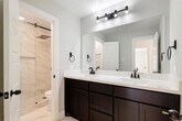MOVE IN READY! Priced to Lease ASAP! 5-bedroom, 3-bathroom modern retreat located in the highly desirable, resort-style community pool, walking trails, with top-rated Prosper ISD schools. This home combines elevated design with everyday comfort. Stunning light wood flooring that flows throughout the entire home. The open-concept layout features high ceilings and multiple windows that fill the space with natural light. French double doors open to a private office—ideal for working from home or quiet study. 27 Solar panels, refrigerator, washer, and dryer will be included in lease and HOA fees Included! Designed for privacy, the split-bedroom layout includes a luxurious primary suite on the main floor. The en-suite bath features double vanities, a dedicated dressing table, a large soaking tub, a separate shower, and a generous walk-in closet. Upstairs offers a large family room, along with three generously sized bedrooms and a full bath. Don’t miss the chance to lease this exceptional home—schedule your private showing today!