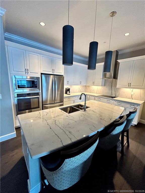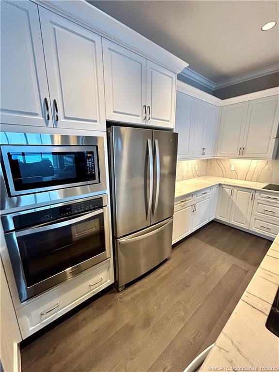 Welcome to this waterfront penthouse on Osceola Street,just steps from Downtown Stuart! This spacious 1BR/2BA condo offers stunning wide water views of the St. Lucie River and features dark hardwood floors,an open layout,and a modern kitchen with island,white cabinetry,and high-end stainless steel appliances. A built-in bar with sink and ice maker adds a great touch for entertaining. The bedroom boasts river views,a large walk-in closet,and a spa-like en-suite. A versatile bonus room can serve as an office,den,or dining area. Enjoy sunrises and sunsets,from the large balcony. Includes in-unit washer/dryer,one garage parking space,secure key fob entry,and elevator access. No smoking or pets. Background and credit checks required. Max occupancy: 2. Furniture shown in photos will be removed prior to move-in if desired.
