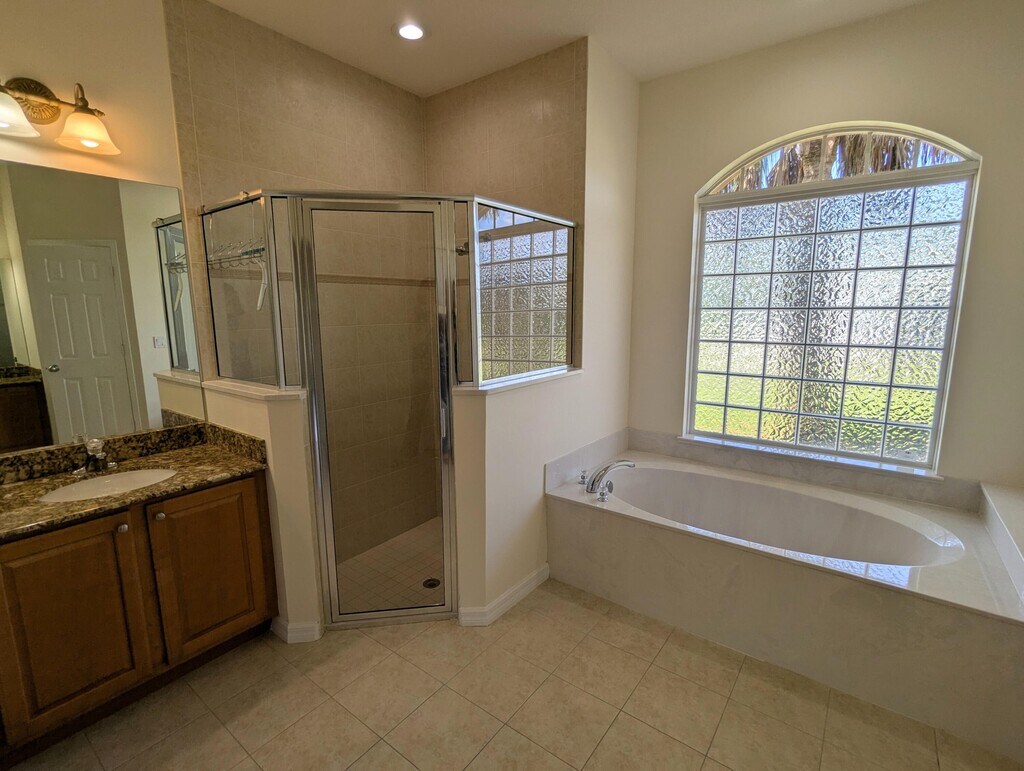 Waterfront beauty in The Estates at Sawgrass Lakes! This 3/2/2 offers a bright, open design with defined living and family rooms, elegant formal dining, and a welcoming breakfast bar. Stylish tile flows through the main living spaces, while bedrooms enjoy warm wood-look laminate. The kitchen is a chef's delight with granite counters, ample cabinetry, pantry, and newer stainless steel appliances. Step through French doors to a covered lanai, where a spacious backyard and sweeping lake views create the perfect backdrop for morning coffee or sunset gatherings. Available now! Basic cable, internet included.