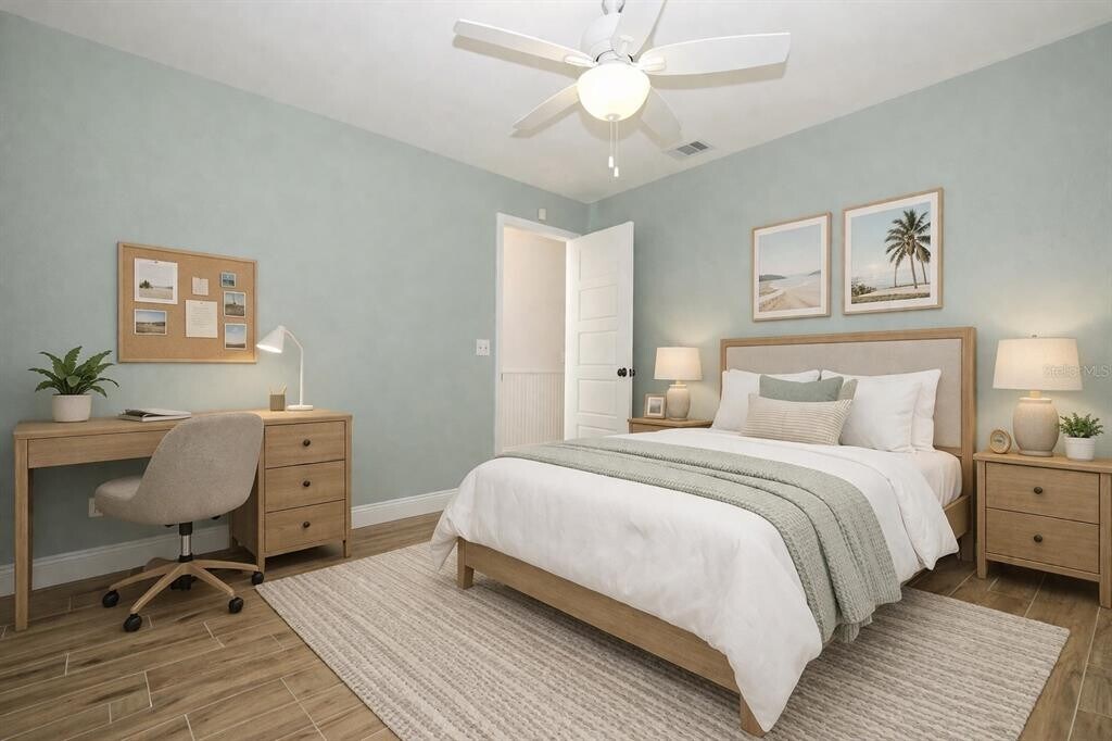 One or more photo(s) has been virtually staged. A TRUE GEM on a cul-de-sac street! This 4-bedroom rental home is situated on a gorgeous .65-acre lot with a rear easement,fully fenced for added privacy,and enhanced by craftsman-style curb appeal beneath majestic mature oak trees. Enjoy an extraordinary,picturesque,tropical landscaped park-like backyard—a true private oasis. The 33' x 12' screened porch and 16' x 12' saltwater pool deck overlook a serene,tree-lined setting featuring a saltwater pool,outdoor playset,and fully fenced yard,offering a perfect space to relax and unwind. The exterior has been updated to a craftsman style and includes a newer architectural shingle roof and solar panels for added energy efficiency and cost savings. Inside,the home features a truly custom kitchen with wood cabinetry with crown molding,granite countertops,breakfast bar,built-in pantry with pull-out shelves,pot and pan drawers,French door refrigerator,upgraded sink and hardware,skylights,and a bright eat-in area. The kitchen opens to a spacious 17' x 17' family room with skylight,recessed lighting,and sliding glass doors leading to the screened porch and saltwater pool area with pavers and beautiful views. Wood-look tile flooring runs throughout the entire home,with travertine in the primary bathroom. The primary suite offers a fully updated upscale bath with frameless glass shower,dual sinks,Kohler fixtures,walk-in closet,and French doors in the primary lead to the screened rear patio area. A leaded glass entry door welcomes you into the foyer,dining room,and a den/office with glass French doors. The split bedroom floor plan provides added privacy. Bedrooms 3 & 4 share a completely updated hall bath with new tile tub/shower,dual sinks,framed mirrors,and convenient access to the porch—also functioning as a pool bath. Additional features include an oversized 2-car garage,sprinkler system,gutters,wood blinds,updated knockdown wall and ceiling finishes,updated lighting,ceiling fans throughout,and a laundry area with a brand new laundry tub and faucet. This home offers a rare combination of space,privacy,and upgraded finishes in a peaceful setting—schedule your showing today to experience it in person. MLS# O6393466
