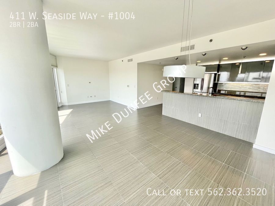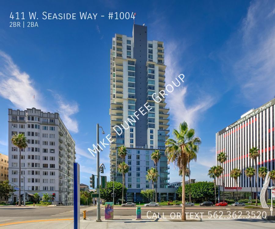 Discover modern waterfront living in this stunning corner 2-bedroom, 2-bath condo located in the prestigious 411 Seaside Way community. Offers floor-to-ceiling windows, great natural light, and beautiful views of the ocean and city. Features include an open floor plan, a private balcony off the living room with great outdoor space for entertaining, touch-up paint, luxury modern tile, carpet, and custom shades. The kitchen features granite countertops and stainless-steel appliances, including a refrigerator, gas stovetop-oven range, mounted microwave, dishwasher, stackable washer/dryer in-unit, and two assigned parking spaces. HOA dues include water, gas, sewer, and trash. The tenant pays for electric, cable, and internet services. The 411 West Seaside Way community provides a 24-hour concierge, access to the amenities of both Tower 1 and Tower 2, includes a large pool, spa/sauna, outdoor shower, BBQ grills, 2 fitness centers/gyms, billiard & game room, business center, multiple club rooms, and lounge areas, rentable guest suite, bicycle room, and visitor parking. The West Ocean Tower is close to The Pike, beach, the boardwalk, Aquarium of the Pacific, entertainment/restaurants, grocery stores, shopping, freeways, farmers market, Performing Arts Center, East Village Arts District, Long Beach Convention Center, Queen Mary, Pine Ave. & Belmont Shore! Schedule a showing: