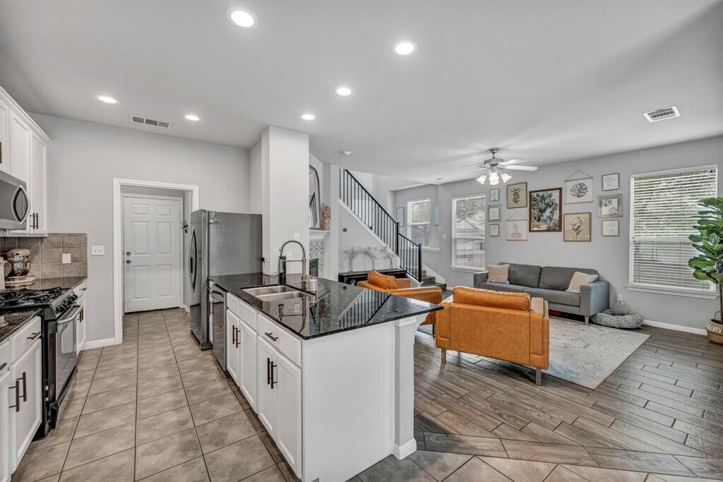 Located in the gated community of Brookside Villas, this well-maintained home features an open-concept layout with abundant natural light, wood grained tile floors, and a fireplace with newly updated designer tile. The kitchen offers granite countertops, stainless steel appliances, and ample storage. Rare for the community: a private extended deck downstairs and a covered balcony off the primary bedroom upstairs. Both bathrooms upstairs feature recently updated tile. Complete with a private attached 2-car garage. HOA covers water, sewer, and exterior maintenance—no water bill. Dog park directly across the street. MLS ID 7031095