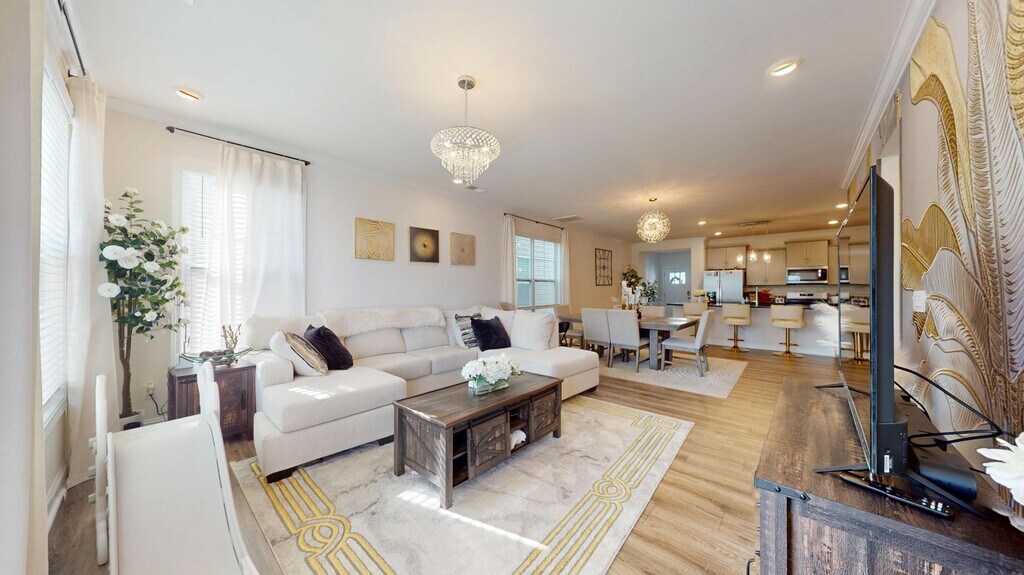 Located in the quiet, newly developed Blackstone Bay community, offers the ideal blend of modern luxury and suburban tranquility. This expansive 2,570‑square‑foot townhome features an open‑concept design perfect for both elegant entertaining and everyday family living. The gourmet kitchen impresses with granite countertops, a large central island, stainless steel appliances, a walk‑in pantry, and abundant cabinetry.The flexible floorplan includes a rare main‑level bedroom with a full bath nearby—ideal for guests, a home office, or multigenerational living. Upstairs boasts a versatile loft area, along with three additional bedrooms, including the spacious primary suite. The primary suite offers a spa-like bath with a garden tub, separate shower, double vanity, and a large walk-in closet. Outdoor living is effortless with a low‑maintenance backyard perfect for dining, play, or quiet evenings. Washer and dryer are included for added convenience. With close proximity to shopping...