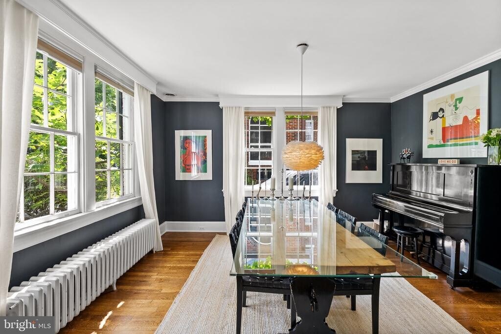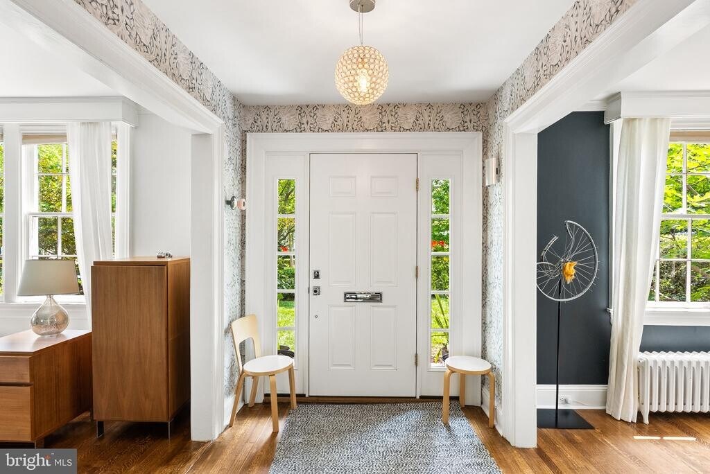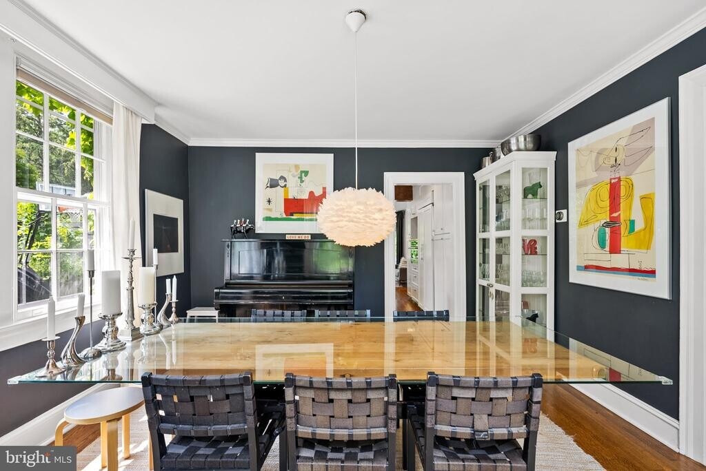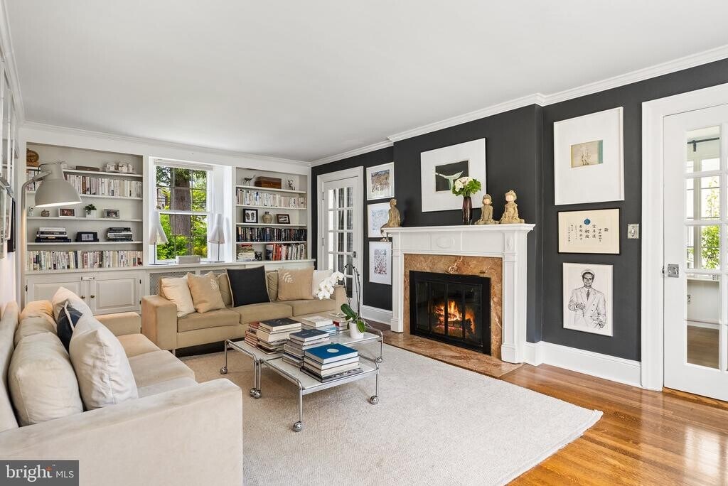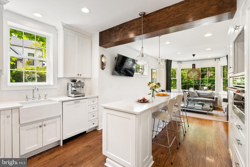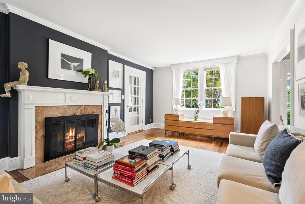 Elevated and elegant, this notable home in the Town of Chevy Chase is thoughtfully designed and beautifully renovated throughout. Brimming with curb appeal with a refined facade and landscaped gardens, this classic five-bedroom / three-and-one-half-bathroom brick Colonial offers the best of both urban and suburban living. Featuring tasteful details, such as hardwood floors, crown and decorative moldings, wood beams, wide doorways, and gorgeous windows, it allows for an abundance of natural light from all sides. Guests enter the gracious center-hall foyer, flanked by a formal living room and formal dining room. The living room is anchored by a fireplace with mantel and floor-to-ceiling bookshelves, while the bright adjacent sunroom is functional as an additional living space or home office. The heart of the home is the chef’s kitchen, highlighted by a center island breakfast bar and high-end appliances. The wood beams and statement light fixtures punctuate the space, with open flow to the family room and door to the back patio and deep backyard, which includes a fire pit -- all perfect for gatherings and entertaining. An updated powder room completes the main level. The second level boasts the gorgeous primary suite featuring a spacious balcony and a spa-like en suite full bath with dual sinks, and contemporary fixtures and finishes that add a dash of style to your morning routine. Two additional bedrooms, plus a bright, full bath with a convenient washer/dryer complete this level. The third level is composed of two additional bedrooms, another full bath, and attic storage. The expansive lower level provides ample room for any need -- use as an additional recreation space, an oversized game room, or future guest suite. There is also garage access, laundry, and ample storage. 4111 Rosemary Street benefits from parks, trails, and neighborhood amenities, offering an ideal balance of a quiet residential street and close urban proximity. This home offers it all, in a picture-perfect package.