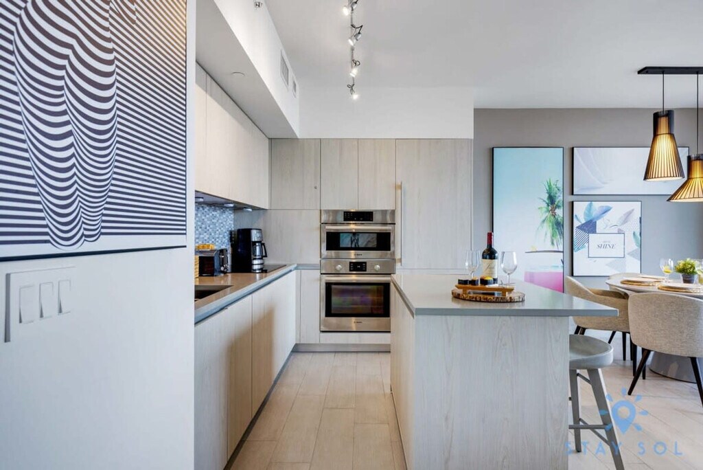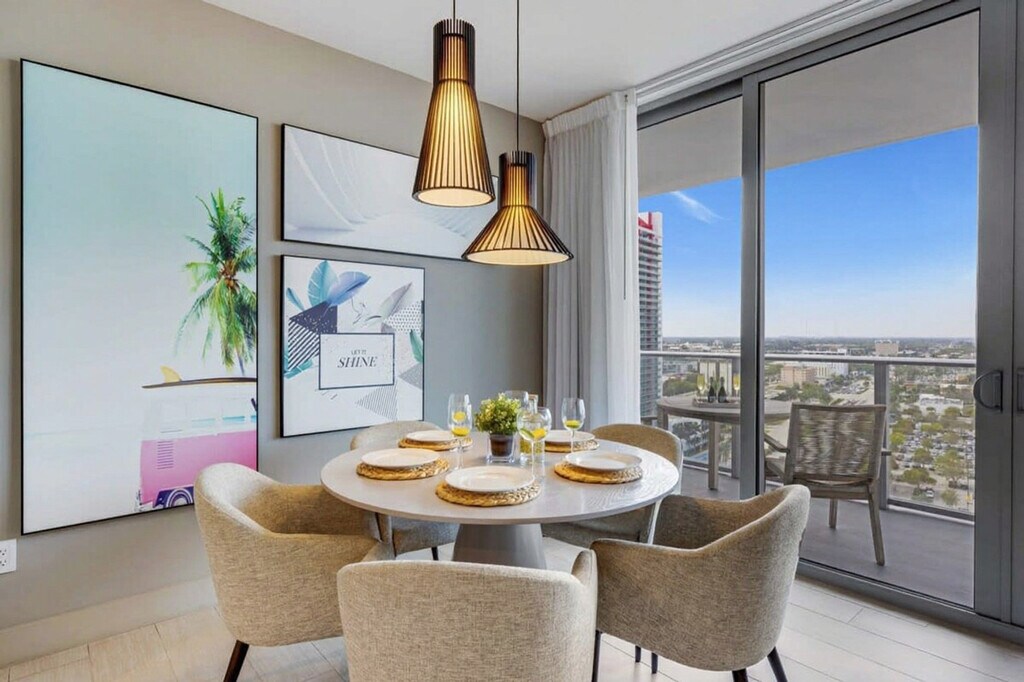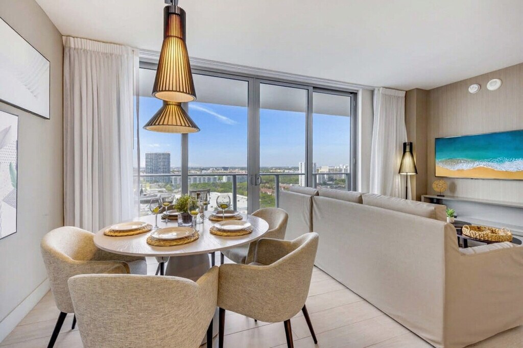 The advertised rate of $4,350/month is the lowest available price, based on a 30 day(s) stay with a move-in date of August 28, 2026. Rates vary depending on the duration of stay, season, and other parameters. For exact pricing and additional pricing components, please visit our website and enter your desired move-in and move-out dates. The rate is applicable when billed upfront; it can be higher if billed in multiple payments. Feel at home in this brand new luxury condo in front of Hollywood Beach. This 15th-floor, 1-bedroom bay view unit features 1.5 bathrooms and a balcony with a stunning view. This well-appointed apartment mixes natural wood and stone with organic textures and state-of-the-art technology. Highlights include a fully equipped kitchen and a large balcony to enjoy a panoramic view of the bay. The fully equipped kitchen offers a stainless steel refrigerator/freezer, glass stove, integrated oven, silent dishwasher, integrated microwave, stove, dishes, coffee maker, hairdryer, electronic safe, iron/ironing board, in-unit washer/dryer, and TVs in each room. Amenities include two infinity-edge ocean and bay view pools, a sundeck, private cabanas, a fitness center, and a hot tub. Valet parking is available for a fee of $42 nightly for 1–6 nights, $15 nightly ($105 weekly) for 7–29 nights, and $9.33 nightly ($280 monthly) for 30+ nights. A pack’n play crib is available for free upon request. Just beyond the resort, you'll find the Hollywood Beach boardwalk and miles of Blue Wave-designated beaches. Surrounded by lots of restaurants and the world-famous Gulfstream Park, where you can dine, enjoy horse races, or try your luck at the casino five minutes away. To the west, you can visit the famous colossal Hard Rock Guitar Hotel & Casino, and it is the perfect location to be on the beach if you are attending an event at Hard Rock Stadium. To the south, you can continue to the renowned Aventura Mall, or if you feel like going on an adventurous nightlife, you can head to South Beach to party all night. To the north, you can enjoy more shopping and restaurants in the city of Fort Lauderdale. A 24-hour Walmart is right next door for groceries, and a Publix Supermarket is a two-minute drive away. Swimming is at your own risk, as there is no lifeguard on duty. Children must be supervised by a responsible adult at all times. No diving or running is permitted. Please keep all doors closed and the air conditioning on at all times to help prevent condensation and property damage. [SI]