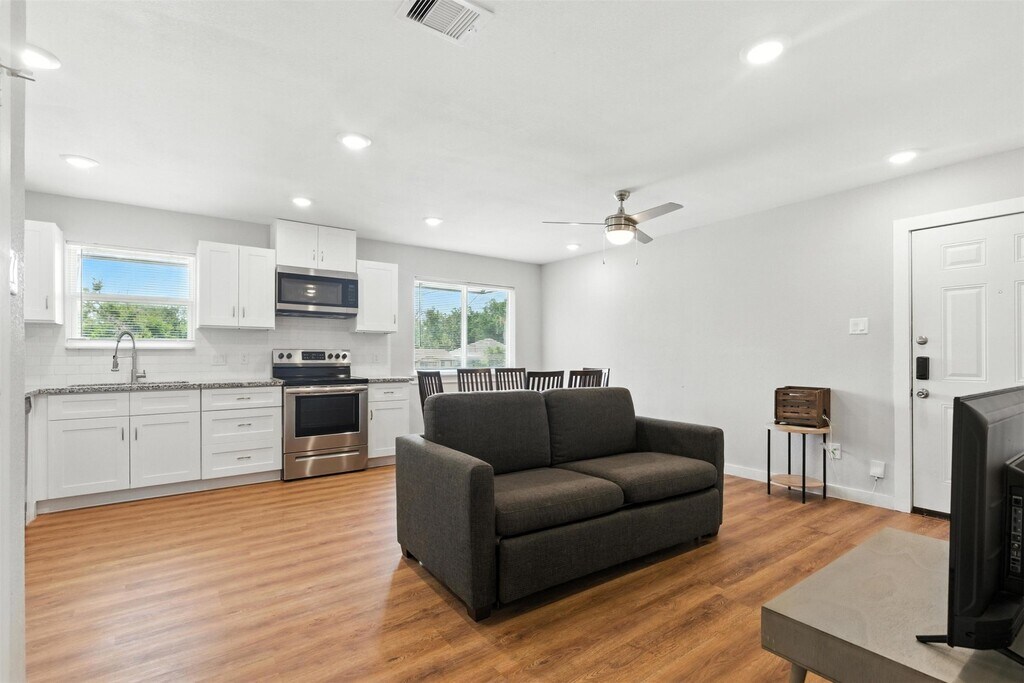 Modern 3-bedroom,2-bath home available now just outside the 610 Loop! This downstairs unit features an open layout,durable flooring (no carpet!),quartz countertops,and a spacious kitchen with modern appliances. Enjoy in-unit washer/dryer,central A/C,and a private,fenced backyard — perfect for pets. Convenient location with easy access to I-69,610,and Downtown Houston. All-electric,separately metered,and ready for move-in. Clean,comfortable,and easy to maintain — welcome home! Furniture may be included. MLS# 72095695