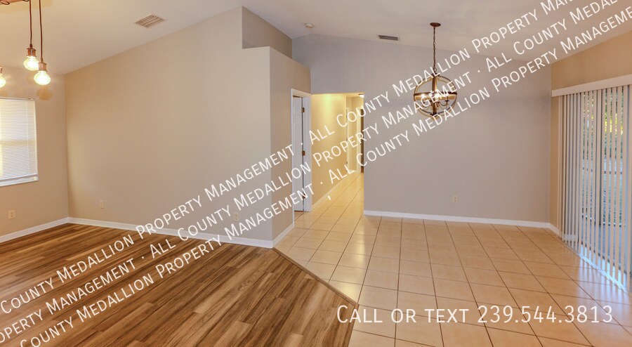 Available now! This beautifully updated 4-bedroom, 2-bath home is located in desirable Southwest Cape Coral and features brand-new luxury vinyl flooring and fresh interior paint throughout. The open-concept layout offers spacious living and dining areas filled with natural light, creating a welcoming atmosphere for everyday living and entertaining. The functional kitchen provides ample cabinet space and flows seamlessly into the main living areas. Generously sized bedrooms and two full bathrooms offer comfort and convenience. Enjoy a private backyard perfect for relaxing or outdoor gatherings. Conveniently located near shopping, dining, schools, and major roadways. Move-in ready and available for immediate occupancy — don’t miss this opportunity! No Smoking a Pets Negotiable.