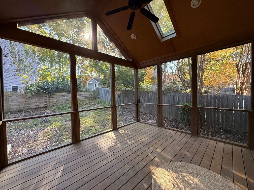 Welcome to this stunning 3-bedroom, 2-bathroom home located in Raleigh. The property is situated in an HOA community and offers easy access to I-540 and Hwy 50, making commuting a breeze. The home is less than 15 minutes from RDU Airport and North Hills, and near shopping and dining at Townridge Shopping Center. The home is nestled on a large lot with a partially fenced yard, a screened porch, and a deck, perfect for outdoor entertaining. The high/vaulted ceilings and skylights allow for an abundance of natural light throughout the home. The first floor features a primary bedroom with an en-suite bathroom. The home also includes a 1-car attached garage, a wood fireplace, and hardwood floors throughout. It is located near William Umstead State Park, Leesville Community Park, and Lake Lynn & Trail, offering plenty of opportunities for outdoor activities. This home is a perfect blend of comfort, convenience, and location. Don't miss out on this gem in Raleigh! *No smoking *Pets are negotiable *Utilities separate *Leasing Broker: hayden@ *Applications must be submitted at and are refunded if not reviewed due to an earlier applicant being approved *Tenants are enrolled in our Resident Benefits Package which includes quarterly HVAC filters mailed directly to the home *Property Manager: Keyrenter Raleigh Property Management *Application processing time is 1-3 business days. Please review Keyrenter's Application Criteria prior to applying *Other terms, fees, and conditions may apply. All information is deemed reliable but not guaranteed and is subject to change Keyrenter Raleigh 4242 Six Forks Rd. Ste 1550, Raleigh, NC 27609