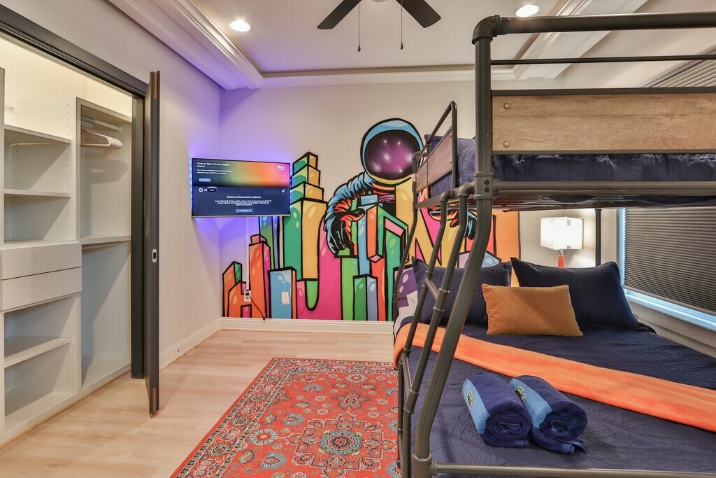 Experience refined living in this stunning,fully furnished move-in ready rental located in one of Houston’s most vibrant neighborhoods. This home stands out with custom murals in every room,each hand-painted by a talented local Houston graffiti artist,giving the space a unique creative energy you won’t find anywhere else. Every bedroom features its own private en-suite bathroom,offering comfort,privacy,and convenience for all residents or guests. The interior is beautifully curated with modern furnishings,warm finishes,and a welcoming atmosphere that lets you settle in effortlessly from day one. With thoughtful design,artistic flair,and a prime central location,this home offers a truly one-of-a-kind living experience. Don’t miss the chance to make this Houston gem yours. MLS# 32693154