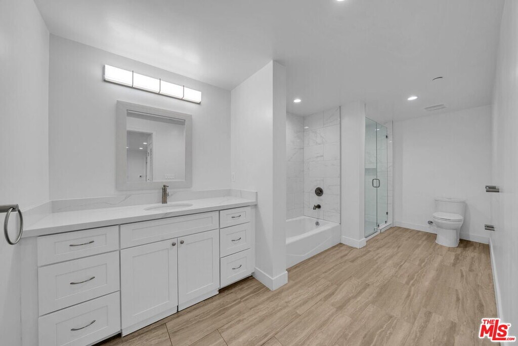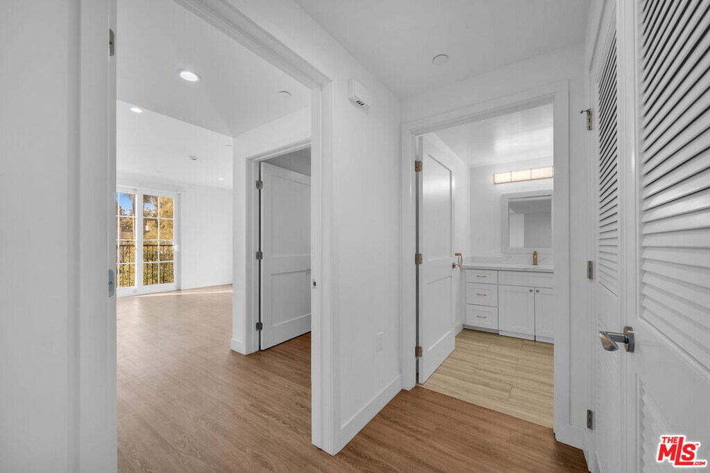 Modern European light, bright & HUGE 1bed 1bath single story updated unit in a newer construction building. Open kitchen with stainless steel appliances. Spacious living room modern lighting and a large balcony that faces Vantage Ave. Hallway off the living room takes you to the bedroom with huge walk-in closet. LARGE bathroom, with separate tub and walk-in shower. Other features include Central AC, in-unit full size washer & dryer, an elevator in the building, a fitness room and one assigned parking spots in the gated secure garage. Great curb appeal with a elegant lobby. PET FRIENDLY. MLS# 25626673