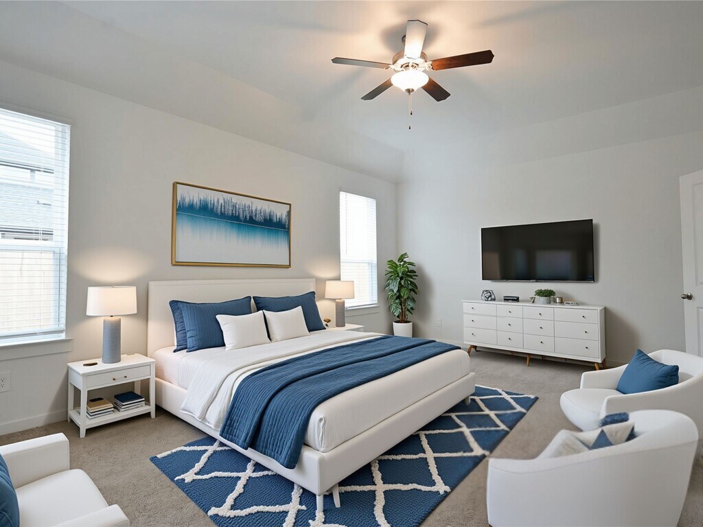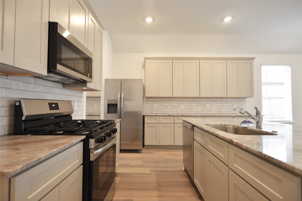 Spacious one-story home featuring 4 bedrooms,3 full baths,formal dining,and a 2-car garage. The split floor plan includes a private fourth bedroom with its own bathroom,ideal for guests or a home office. The gourmet kitchen offers stainless steel appliances,granite countertops,42-inch cabinetry,and a large walk-in corner pantry,opening seamlessly to the family room with 10-foot ceilings. The oversized primary suite provides a spa-like bath with a garden tub and separate oversized mud-set shower. Enjoy outdoor living on the covered patio overlooking a fully sodded yard with a full irrigation system. Smart home automation and energy-efficient features included. Located outside of the flood zone. CCISD. MLS# 62677135