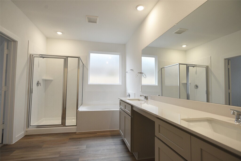 Norman FrenkSpacious one-story home featuring 4 bedrooms, 3 full baths, formal dining, and a 2-car garage. The split floor plan includes a private fourth bedroom with its own bathroom, ideal for guests or a home office. The gourmet kitchen offers stainless steel appliances, granite countertops, 42-inch cabinetry, and a large walk-in corner pantry, opening seamlessly to the family room with 10-foot ceilings. The oversized primary suite provides a spa-like bath with a garden tub and separate oversized mud-set shower. Enjoy outdoor living on the covered patio overlooking a fully sodded yard with a full irrigation system. Smart home automation and energy-efficient features included. Located outside of the flood zone. CCISD.