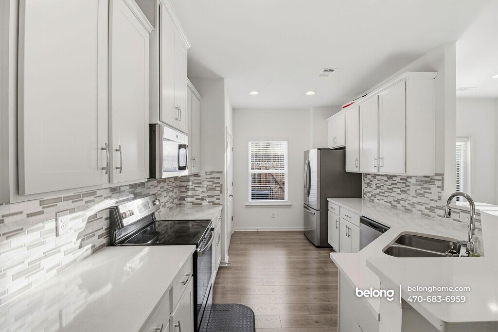 Clean, modern lines pair with thoughtful touches to create this three-bedroom home that feels streamlined and easy to settle into. Heat and central A/C support year-round comfort, while the included security system with login access adds practical reassurance. Your main living area provides an open backdrop for arranging seating and gathering zones, with neutral flooring and crisp walls contributing to a simple, uncluttered look. Wide windows bring in steady natural light, keeping the space bright. In the kitchen, you have sleek cabinetry, a full appliance set, and generous work surfaces that make meal prep straightforward. The adjoining dining area maintains the home’s clean aesthetic, giving you space to establish a tidy, functional routine around meals. All three bedrooms sit upstairs, each offering a comfortable, minimal framework for everyday use. And this home allows two pets, keeping things convenient for pet owners. The community around you is known for its quiet, friendly character, with easy access to major connectors like 75 and 85. Five major grocery stores sit within two miles, including Publix, Kroger, Walmart Supercenter, Sprouts Farmers Market, and ALDI. You’re also close to dining and shopping around Tucker Meridian and Northlake, plus green spaces such as Henderson Park for weekend walks. *Our homes come as-is with all essentials in working order. Want upgrades? Request it through the Belong app, and our trusted pros will take care of the rest!