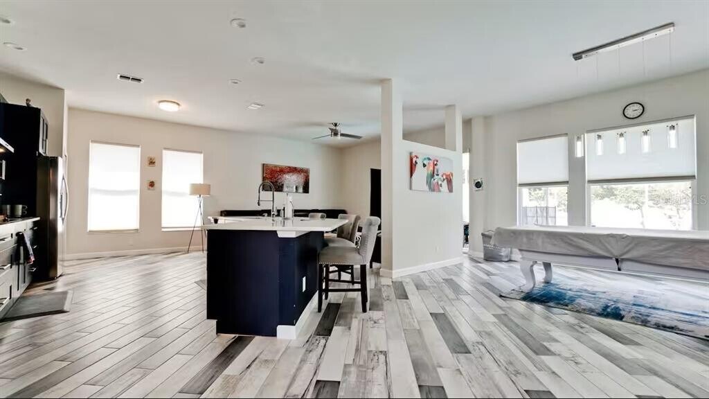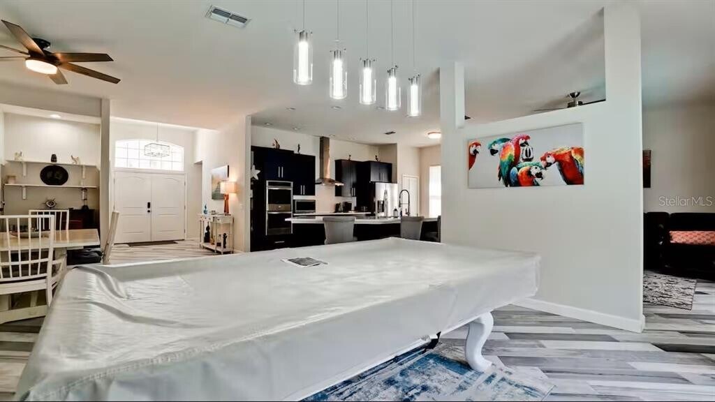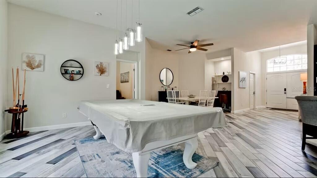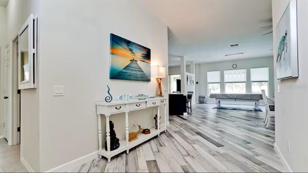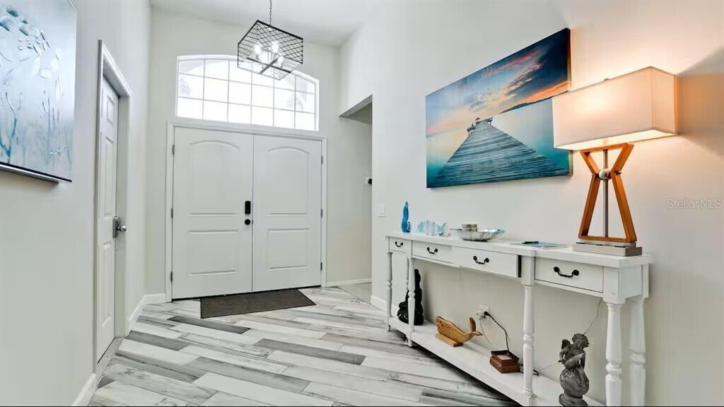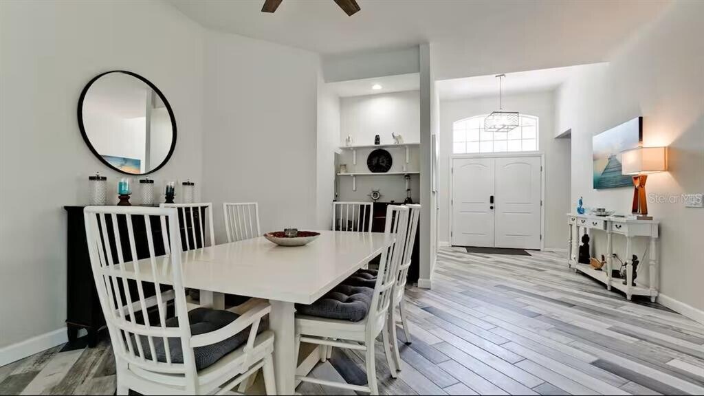 Stunning 3 Bedroom,2 Bath Furnished Pool Home with Lake View! Welcome to this beautifully updated corner-lot home offering comfort,style,and convenience. From the moment you arrive,you’ll be captivated by the serene lake views from the front of the property. Step inside to an open-concept layout that seamlessly connects the kitchen,dining area,living room and family room (game room)—perfect for everyday living and entertaining. The gourmet kitchen features navy cabinetry,granite countertops,and newer stainless-steel appliances,creating a sleek modern feel. Ceramic tile flooring flows throughout the home for a clean,low-maintenance touch. Enjoy Florida living at its best with sliding doors that open to a screened,heated saltwater pool and covered lanai. Just beyond,a private deck offers the ideal space for sunbathing or hosting gatherings and a fenced backyard. The spacious primary suite includes a walk-in closet and a spa-like ensuite with dual sinks,a soaking tub,and a walk-in shower. Two guest bedrooms and a full bath with a tub/shower combo provide comfort and privacy for family or guests. This home is offered fully furnished with modern décor,plus a pool table for added fun and entertainment. Additional features include an inside laundry room and abundant natural light throughout. Perfectly located near a boat ramp with access to the Manatee River,this home offers convenience to hospitals,shopping,dining,banks,and is less than 15 miles from the area’s beautiful Gulf beaches. MLS# A4665169
