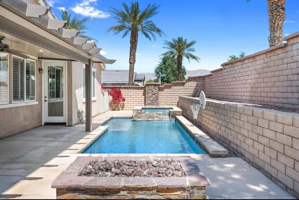 Welcome,to your beautiful new home located in the gated community of Palazzo. This single level home features 5 bedrooms,3.5 bathrooms,an open floor plan,with a chef's kitchen featuring granite countertops. The backyard is great for entertaining with your own private pool,spa,and fire pit. Palazzo is a gated community offering a neighborhood park for the kids. Along with being close to shopping,restaurants,and nightlife. MLS # 219145856