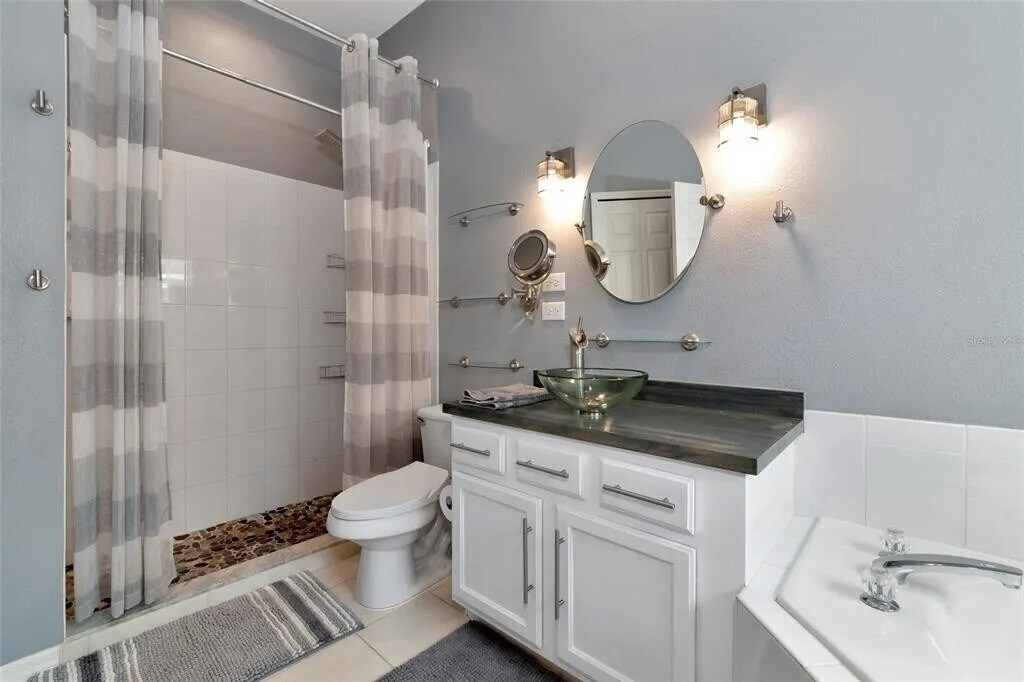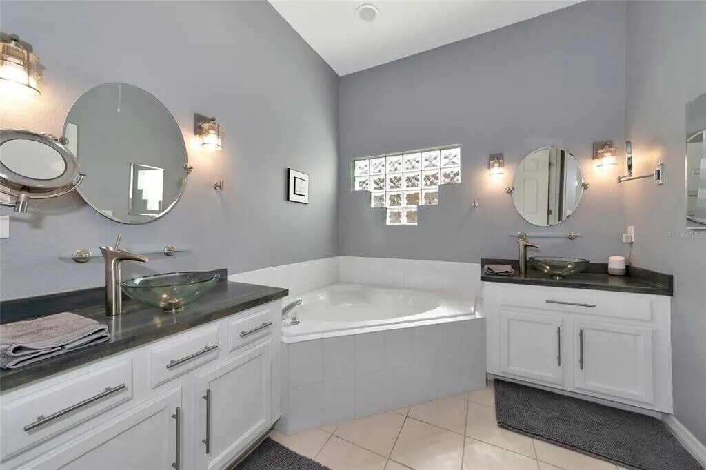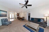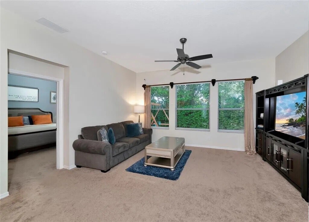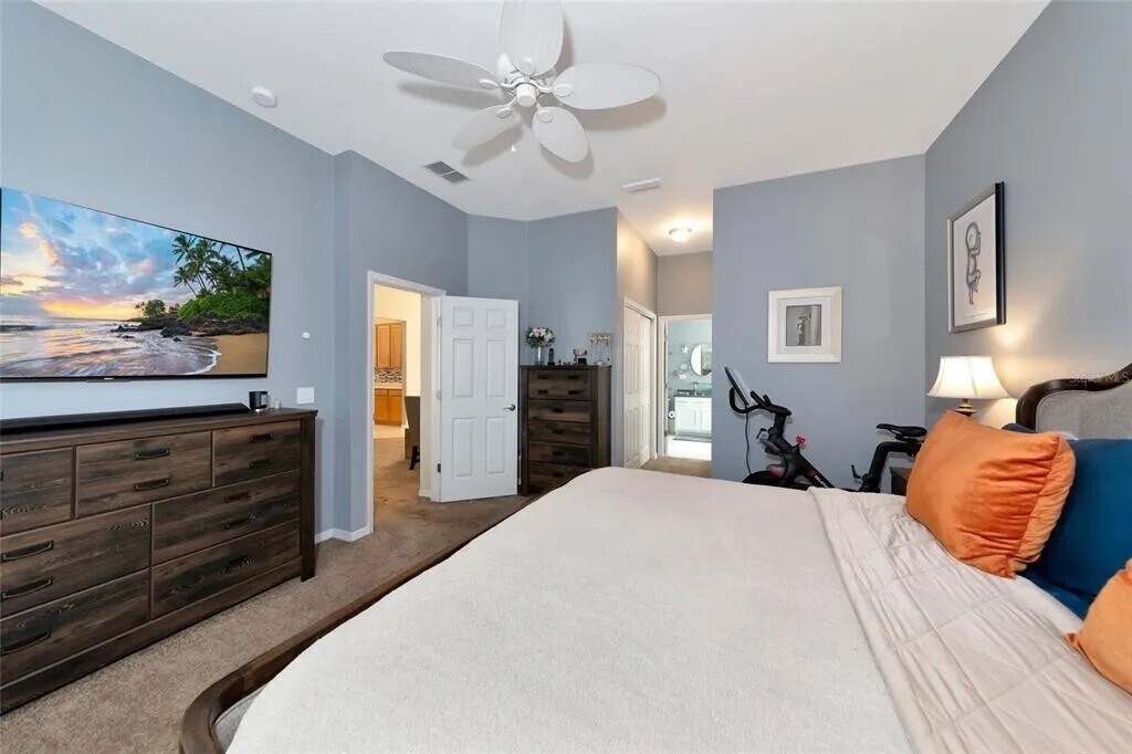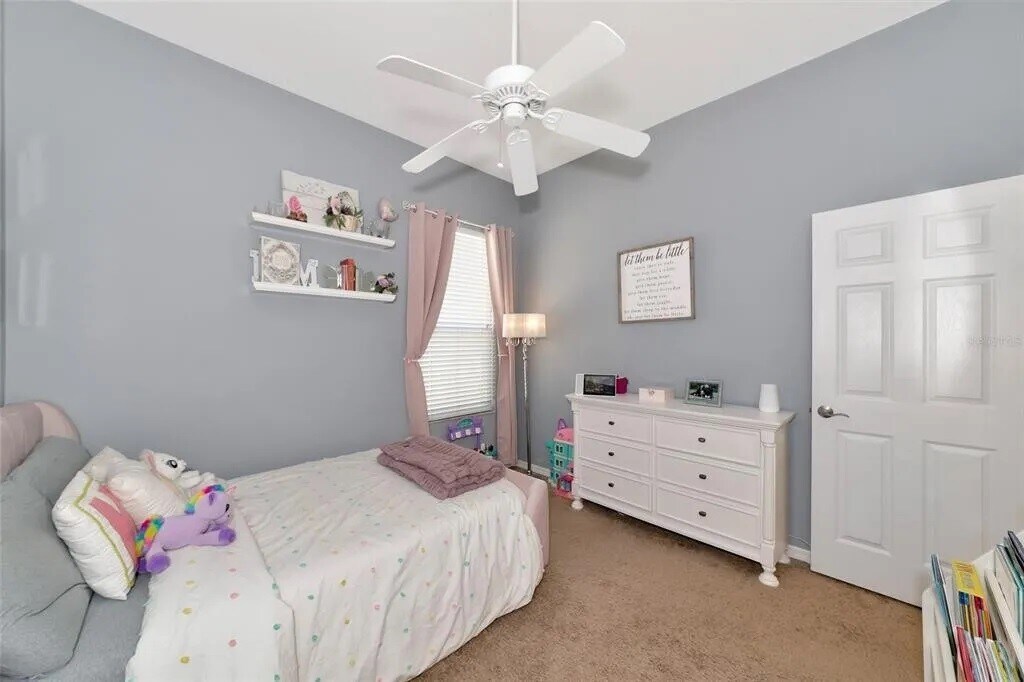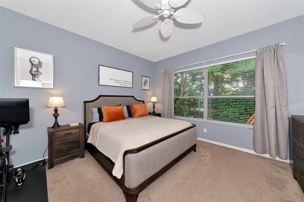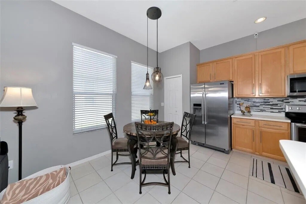 Home is unfurnished This home is nestled on a quiet road at the back of the neighborhood with minimal traffic in the hidden gem community of Riverpoint. This is a boatable community with boat launch, fishing dock, and park! This home features 10-12' high ceilings, tons of natural light, an open concept living space, and split floor plan, providing plenty of room for your family. The large kitchen has stainless appliances, island seating, a breakfast nook, ample counter space, 43" tall wood cabinets, a gorgeous backsplash and a pantry. Off the kitchen, you will find a formal dining room, living room, and an oversized family room. The master bedroom suite has his and hers closets (1 walk in) and an en-suite bathroom with an oversized walk in shower, large garden tub, and 2 separate vanities. On the opposite side of the home you will find two additional bedrooms and one more full bathroom, plus a laundry room with sink and pull down drying rack, as well as an attached two car garage. Step out the sliding glass doors into your screened in lanai and patio, surrounded by an extremely private, landscaped back yard oasis for you to enjoy. The roof was replaced in 2020 and the HVAC in 2019!