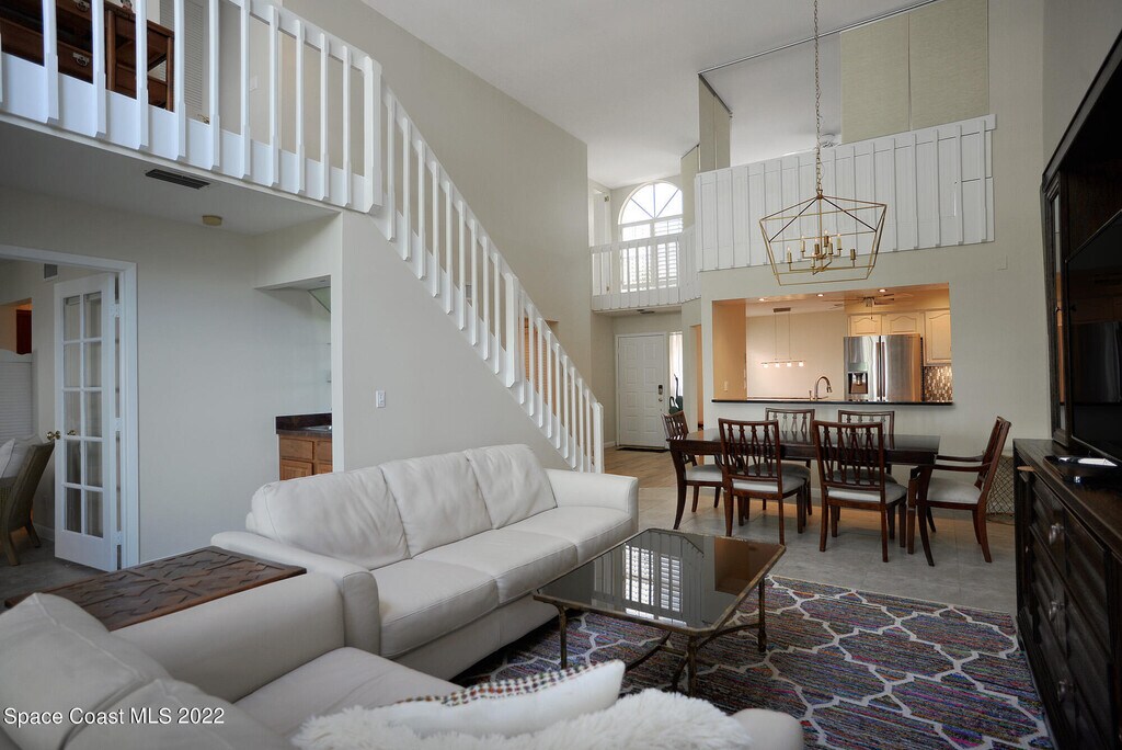 Perfect furnished rental for someone looking for something special! Fall in love with absolutely stunning views w/ big tall windows + doors throughout! Gourmet kitchen perfect for entertaining. Beautiful oaks and palms surround this community. A peaceful place where you will enjoy the quiet. 2nd level has big loft area that has another kitchen + en suite w/separate sitting room + huge balcony overlooking the river + lots of palms. 2nd level primary suite with balcony over the river. 1st level has 1 bed and another primary suite! Big living/dining area. Community river pier/ocean access and tennis courts. MLS # 1070329