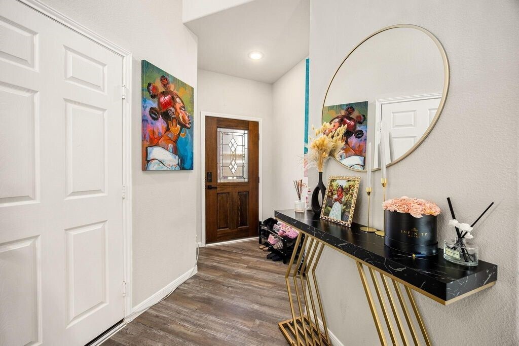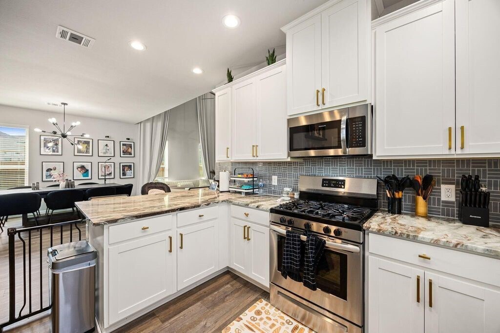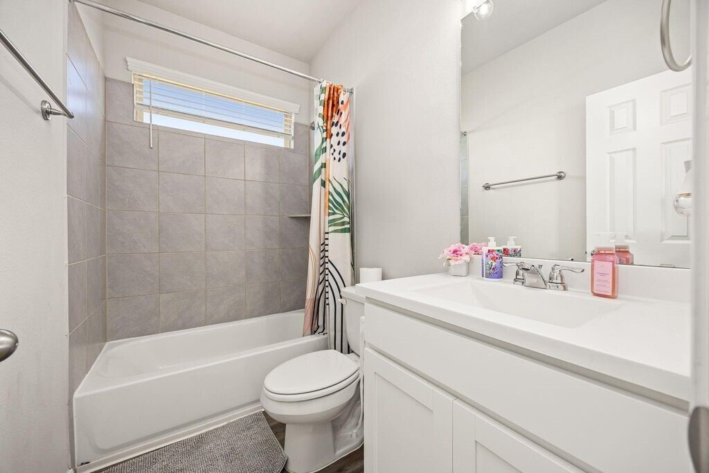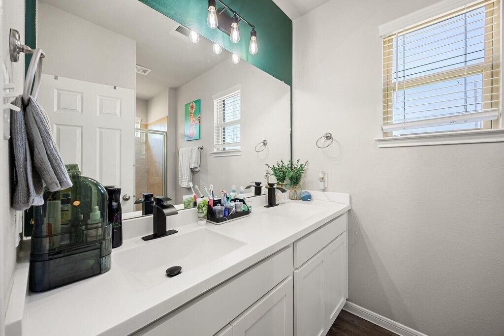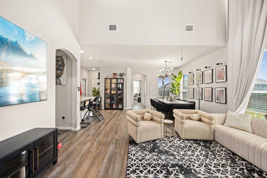 Step into your dream home located in the highly sought-after Sunterra neighborhood! This beautifully maintained 4-bedroom,3-bathroom residence offers a spacious 2,156 square feet of living space. The living room features soaring cathedral ceilings,creating a bright and open ambiance. An open-concept layout seamlessly connects the living area,dining space,and kitchen—perfect for hosting gatherings. The gourmet kitchen comes equipped with stainless steel appliances and a breakfast bar that comfortably seats three. The main-level primary suite includes a modern ensuite bath with a sleek shower and a generous walk-in closet. Also on the main floor is a second bedroom with a cozy closet and a conveniently located full bathroom. Upstairs,you'll find two more bedrooms,another full bath,and a versatile game room. MLS# 6628557